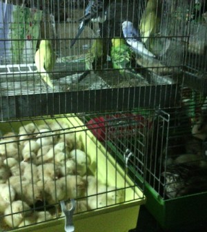 Le foto sono state scattate nella serata di sabato 11. Dozzine di pulcini ammassati in una sola gabbia, tartarughe e pesci rossi in piccole vaschette, conigli, porcellini d’india, piccole oche, pappagalli e persino quaglie, tutti in angusti spazi sovraffollati e spesso sprovvisti addirittura di acqua, non solo erano in vendita, ma anche oggetto di una lotteria in cui, come da lavagnetta esposta, “si vince sempre con 2 euro”. Animali delicati e sensibili trattati alla stregua di oggetti (“i premi vinti non si cambiano”, recita l’avviso ben in vista sulla ruota della fortuna della bancarella), rannicchiati negli angoli, terrorizzati dalle voci urlanti dei bambini e dalla generale confusione del passeggio.