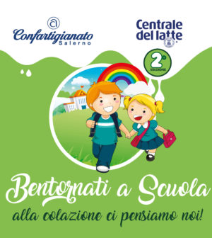 Giovedì 30 settembre Confartigianato Salerno e Centrale del Latte Salerno offrono la sana colazione ai piccoli studenti salernitani. Un modo originale per avviarli ad una sana colazione e per augurargli anche un buon anno scolastico, si spera in presenza e senza più restrizioni. Dopo il successo dello scorso anno, l’iniziativa “Bentornati a Scuola” si ripete; tante le novità ma lo scopo dell’iniziativa rimane lo stesso: sensibilizzare i giovani al consumo di prodotti a km zero e di filiera corta attraverso la “merenda della salute”. Giovedì 30 settembre tutti i bambini possono ritirare gratuitamente presso i panifici aderenti un sacchetto contenente un brick di latte&cacao della Centrale del Latte, una brioche artigianale sfornata dai panificatori di Confartigianato Salerno e… una piccola sorpresa per iniziare al meglio il nuovo anno scolastico. Per conoscere quali sono panifici che aderiscono all’iniziativa, basta cliccare su questo link: https://www.google.com/maps/d/u/0/viewer?mid=1LpKOyp1gKK2lRB4nF-WL2gxgLAglkr0Z&ll=40.34337844571304%2C15.184039500000022&z=9 e seguire le spighe verdi.