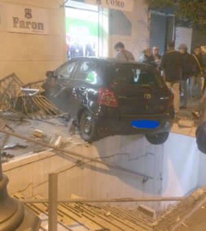 CAVA DE’ TIRRENI. Poco prima della mezzanotte, una Toyota yaris di colore nero preveniente da viale Benedetto Gravaguolo nell’immettersi su via Principe Amedeo ha velocità sostenuta ha perso il controllo nell’immboccare la curva, ed è finita sul lato opposto. La vettura ha abbattutto la ringhiera del sottopassaggio, finendo la sua corsa in bilico, tra il marciapiede e le scale. Nessun ferito nello spettacolare incidente. A bordo dell’auto quattro giovani rimasti illesi.