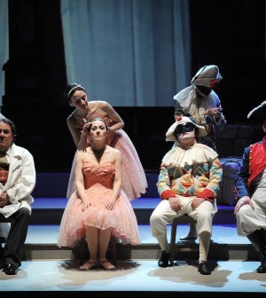 Teatro Verdi al completo per titoli quali Cavalleria Rusticana di Pietro Mascagni e Pagliacci di Ruggero Leoncavallo, cui il pubblico non manca mai di ascoltare. Il sipario si è aperto su Cavalleria Rusticana, ancora una volta sul piccolo borgo marinaro, ricreato nelle scene di Alfredo Troisi nel 2011, attraversato, però da una statua vagante, una Maria Addolorata in carne ed ossa con velo nero in dosso, simbolo di Morte, felice intuizione di Riccardo Canessa, che ha firmato le regie di entrambi i titoli, riutilizzando gli stessi elementi scenografici della precedente produzione. Una Madonna che vaga per l’intera veglia pasquale in cerca del suo unico amore, Gesù, abbracciandolo trasfigurato, a mezzogiorno della mattina di Pasqua, che fa il doppio con Santuzza, la quale ritrova speranzosa il suo Turiddu, nello stesso momento, una Violeta Urmana di grande potenza, sulle tracce di quella indimenticabile schizzata da Ghena Dimitrova, nel nostro massimo, nel 1998. Il cast purtroppo si è rivelato nullo, nel confronto di questa punta di diamante. Meglio sarebbe stata una squadra di cantanti di medio livello che una sola eccellenza circondata da mediocri, a cominciare dal giovane tenore Dario Di Vietri, il quale ha esordito sporcando la Siciliana d’apertura interna di Turiddu, con problemi d’intonazione, un divario immenso con il soprano lituano, in perfetta sintonia con una parte, che pretende dominio dell’intera gamma di suoni, spolvero e una rilassata sicurezza. Alberto Mastromarino ha dato voce a Compare Alfio, eccellendo nel “parlato”, ma non nell’aria spiegata del carrettiere che è vissuta solo della chiarezza della parola, appena sufficienti la Lola di Natalia Verniol, con la sua aria “Fior di Giaggiolo”, che abbiamo colto nel suono del flauto di Antonio Senatore, e la Mamma Lucia di Francesca Franci. Il braccio destro di Daniel Oren, Carmine Pinto, cui è stato concesso di dirigere il dittico verista, poco ha appreso dal suo maestro, facendo di tutta l’erba un fascio, appiattendo un po’ tutti i tempi, per timore d’inciampare, i diversi movimenti dei temi contrastanti, i modi arcaici evocativi delle melodie, i temperamenti offerti dallo scivolìo cromatico, privi di intenzione i colori chiari della natura, rispecchianti quelli della fatalità amorosa e gli oscuri pugni delle percussioni e dei bassi che muovono il sangue, sino al breve intermezzo che ha vissuto unicamente del violino di Daniela Cammarano. Il coro preparato dal maestro Tiziana Carlini ha pagato le indecisioni del maestro nel “Viva il vino spumeggiante”, dopo aver concesso onorevole prova nella canzone del carrettiere e nell’ “Inneggiamo, il Signor non è morto”. Cambio di scena ed ecco i Pagliacci di Riccardo Canessa, interamente giocati su di un quadro di famiglia “Le marionette” di Maria Papaleo. Un lenzuolo, quello dei guitti che andavano a rallegrare i paeselli, diviene la discriminante tra i due prosceni, quello della vita e quello della finzione. Intellettuale la collaborazione dei figuranti- marionette, uscite dal quadro, che hanno truccato le quattro anime, evocando la “drammaturgia dell’angustia”, del Sartre di Huis Close, che costringe i dannati poiché sono tutti colpevoli, in un modo o in un altro, a mettersi a nudo e a manifestare la propria natura artificiale e allo stesso tempo universale di personaggi. Il direttore Carmine Pinto ha reso maggiormente in Pagliacci, opera certamente più difficile e complessa di Cavalleria Rusticana, concepita semplicemente, in forma diciamo “quartettistica”, con la sua allure melodica sovente debitrice del gusto vocale salottiero, una tranquilla continuità del “turpe” con la linea invitta del glorioso romanticismo. Piero Giuliacci, purtroppo non è più il Canio di cinque anni fa, la voce è oramai non più adatta ad evocare quel cupo e dolente declamato vocale che richiede il ruolo. Le avvisaglie si sono già avvertite nell’annuncio della recita “Un grande spettacolo!” “a 23 ore, poi il furibondo “Ridi Pagliaccio”, che ha fatto e fa la fortuna dell’opera, pur eseguito con pronuncia aggressiva e scolpita, ha rivelato tutta la fatica del cantante per giungere alla fine, per di più improvvidamente bissato con grande sforzo alla prima. Il personaggio di Nedda ci ha riservato una felice scoperta, Valeria Sepe, che ha ben figurato nei panni della fragile ballerina-marionetta beniamina di quel pubblico che non sa e non vuole distinguere le lacrime sul trucco che si disfa. Alberto Mastromarino si è preso la rivincita nei panni di Tonio, mentre il Silvio di Raffaele Raffio è ancora acerbissimo. Buona l’esecuzione della serenata di Arlecchino da parte di Francesco Pittari, nel ruolo di Peppe. Se la tromba di palcoscenico e i corni dell’Orchestra Filarmonica Salernitana hanno steccato, unitamente a qualche nota sfuggita ai tromboni, e si è dovuta registrare anche l’inattesa mancata amalgama dei celebrati legni della formazione nostrana, forse dovuta al cambio del primo oboe, dall’intonazione ondivaga, non ci sentiamo di attribuire l’intera colpa agli strumentisti ma ad un direttore che si è lasciato “sfilare” le redini dai suoi destrieri, non facendo “respirare” una tesissima orchestra che, in mancanza di Daniel Oren, è stata rimpinguata di giovani e inesperti rincalzi. Applausi per tutti e in particolare per le voci bianche di Silvana Noschese. Ultima replica domani alle ore 21.