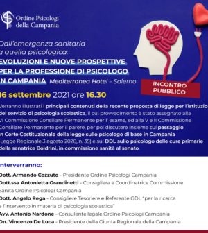 Il lavoro svolto in prima linea durante l’emergenza Covid e l’impegno necessario nella fase post-pandemia, ma anche lo stato dell’arte degli interventi normativi messi in campo grazie alla stretta collaborazione con la Regione. Questi i temi al centro dell’incontro pubblico dal titolo ‘Dall’emergenza sanitaria a quella psicologica: evoluzioni e nuove prospettive per la professione di psicologo in Campania’, organizzato dall’Ordine degli Psicologi della Campania e in programma domani, oggi, al Mediterranea Hotel di Salerno. Nel corso della tavola rotonda, che prenderà il via alle 16,30 e sarà conclusa dal presidente della Giunta regionale Vincenzo De Luca, verranno illustrati anche i principali contenuti della proposta di legge per l’istituzione del servizio di Psicologia scolastica, attualmente allo studio delle commissioni consiliari competenti in materia. Si discuterà, inoltre, della legge regionale per lo Psicologo di base in Campania, sulla quale è attesa la pronuncia della Corte costituzionale e del Ddl sullo Psicologo delle cure primarie, promosso dalla senatrice Boldrini, che è in commissione Sanità al Senato. Sono previsti gli interventi del presidente dell’Ordine, Armando Cozzuto; della consigliera e coordinatrice della commissione Sanità, Antonietta Grandinetti; del consigliere e coordinatore del gruppo di lavoro ‘per la ricerca e l’intervento in materia di psicologia scolastica’, Angelo Rega; del consulente legale dell’Ordine, l’avvocato Antonio Nardone.