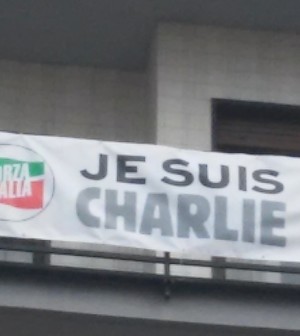 Per questo, dal balcone della sede di Forza Italia, é stato esposto uno striscione con la scritta ” Je suis Charlie” per dire, senza paura e con orgoglio, da che parte stiamo :