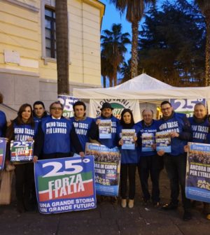 Anche a Salerno Forza Italia ha aderito alla mobilitazione nazionale, scendendo in piazza con i gilet azzurri per denunciare le politiche del Governo gialloverde e ribadire i punti fermi del proprio programma, lo stesso con cui il centrodestra si è presentato alle elezioni Politiche. Parlamentari, amministratori, militanti e simpatizzanti, questo pomeriggio, si sono alternati al gazebo in piazza San Francesco, festeggiando con una giornata d’impegno e lavoro il 25esimo compleanno di Forza Italia. «Anche a Salerno siamo in campo contro la crisi e la recessione, per il lavoro, per le opere pubbliche, per la Flat Tax, per il Sud. Al di là degli slogan, il Paese è fermo e la disoccupazione aumenta – ha dichiarato il coordinatore provinciale e deputato forzista Enzo Fasano -. Il Governo, con le sue politiche ondivaghe, ostacola gli investimenti, blocca le grandi opere e rischia di far aumentare l’Iva. Noi sentiamo il dovere di spiegare le nostre proposte che vanno incontro alle esigenze del Mezzogiorno che è scomparso completamente dal programma di Governo. C’è un ministro del Sud ma non ci sono le politiche per questo territorio. Noi da 25 anni siamo l’Italia del sì e continueremo a lavorare in questa direzione per dare una prospettiva vera al Paese e agli italiani», conclude il deputato di Forza Italia, Enzo Fasano.