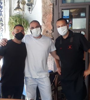 Cinquantuno anni di esperienza nel campo della ristorazione non possono certo dissolversi dinanzi ad un fermo forzato dettato dalla pandemia. Il Caminetto, storico ristorante-pizzeria sito nel centro di Salerno, sulla via Roma, difronte al Palazzo di Città, ha riaperto solo lo scorso week-end, saltando a piè pari, il periodo dell’asporto e prevedendo che, di ordinanza in ordinanza, si sarebbe ritornati quasi alla normalità. Dehors senza tende laterali, tavoli alla giusta distanza, misurazione della temperatura all’ingresso e schedatura del cliente, poi, tutto è rimasto uguale, anche se si può godere della vista del sorriso dei componenti dello staff, solo attraverso lo sguardo, essendo tutti “mascherati”. “C’è ottimismo – ha affermato il più comunicativo della squadra Corrado Benincasa, cuore italiano, ammaliato dalle atmosfere dell’isola della musica, che racconta la vita attraverso il ritmo del corpo Cuba – in questo week-end abbiamo incominciato a lavoricchiare e dobbiamo far prendere fiducia al pubblico, che seguendo le giuste regole si può far tutto, riappropriandosi piano piano della normalità. E’ proprio per questo che nulla è cambiato nel ricco menù che proponiamo abitualmente, tantomeno nel conto, mentre qualche battuta in più si deve fare col cliente, poichè tutti usciamo da tunnel pieno di ombre. Devo confessare però, che il ritorno in sala si è fatto sentire fisicamente, eravamo tutti disabituati a certi ritmi di lavoro”. In questo cinquantennio tanti vip sono passati dal Caminetto, un po’ tutte le compagnie di scena al vicino teatro Verdi, per consumare il momento più bello e atteso che è il dopo-spettacolo, in cui possono nascere sempre nuove idee, progetti sogni. Un forte amore per la propria terra fa rilucere lo sguardo dei patron Guido Avallone e Sandra Pannaci, affiancati dal maestro di sala, Salvatore Tamburrino, in inappuntabile parannanza nera, qualsiasi temperatura segni il termometro, e dalla cassiera Loredana Avallone. In cucina impera lo chef Michela Gripi, sempre dietro i fornelli a “giocare”, inventare, creare nuovi piatti, ma nel segno stretto della cucina povera che stupiscono il pubblico, sempre coccolato nei loro ricchi menù, sapientemente ed abilmente variati, totalmente ispirati dai nostri migliori prodotti delle nostre terre, senza lasciarsi tentare da infedeltà alla tradizione. Sulle tavole imbandite con semplicità non verranno offerti piatti troppo ricercati o necessariamente innovativi: la carta o lo stesso affabile dire di Corrado, Salvatore e Giorgio Galòn, proporranno gustose ricette popolari, approntate al momento, con sincerità e cura. Le pietanze ricordano la cucina semplice inventata dal nostro popolo, base di una gastronomia povera di ingredienti, ma ricca di sapori e di profumi, senza artifizi, gradita a principi, dive e gente comune, il cui segreto è racchiuso nell’umiltà. Il fiore all’occhiello della cucina sono le preparazioni che utilizzano la preziosa biodiversità di ortaggi, e verdura presenti nel territorio: la pasta è il trait d’union tra passato e presente ma rigorosamente fresca o di Gragnano, proposta in maniera tradizionale come la pasta, fagioli e cozze, o alle vongole, i polipetti alla luciana, il famoso baccalà con patate, e tutti i piatti della tradizione marinara, con il pesce, freschissimo, proposto in tutte le “salse”, ma sempre rispettando ed esaltando il profumo del mare. Non si può scampare alle delizie del friggitore, e per chiudere, i dolci casalinghi, fatti secondo le tradizioni familiari, quali il gustoso tiramisù, profiteroles, torta al limone, scomposte, secondo il cimento e l’invenzione del momento. Ma la chiusura è dedicata alla nascita della pizza del Caminetto, il cui artefice è Francesco Capace. Il mistero non lo conosceremo mai: a Francesco la pizza puoi ordinarla nelle sue varianti di prammatica o affidarti al suo estro, al suo cimento, alla sua invenzione e vedervela davanti, sulla tavola, fumante, splendida, nel suo cerchio perfetto sollevato ai bordi di un anello più cupo, più scuro, con il suo alone di sottile magia con cui ci si nutre come cantando, come ridendo, cullandosi, ermetica e orfica, pitagorica e surrealista come un cibo elargito dagli dei, anzi, da amici di vecchia data, in un momento di generoso affetto.