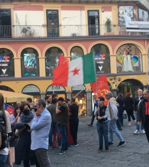 No alla guerra di Draghi, si alla guerra a Draghi è questo uno degli slogan che ieri pomeriggio ha accompagnato la manifestazione organizzata da alcuni gruppi di sinistra, per dire no ad ogni forma di guerra, ma anche per chiedere l’uscita dell’Italia dalla Nato e dall’Unione Europea. Ma le richieste fatti dai manifestanti ieri pomeriggio sono state anche altre, come il no al green pass, no all’obbligo vaccinale e no all’invio di armi e soldati in Ucraina. Un corteo partito dalla stazione di Salerno e che ha attraversato il corso principale per poi fermarsi in piazza Portanova. Una manifestazione che ha visto coinvolte molte persone, tutte guardate a vista dalle forze dell’ordine impegnate a far si che venisse rispettato l’ordine pubblico.Tante le bandiere rosse sventolate durante il corteo e, come detto tanti gli slogan contro il presidente del consiglio.