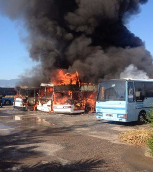 Incendio tra Scafati ed Angri . Erano circa le 16,30 quando le fiamme per cause ancora non note hanno avvolto alcuni autobus in un’area di deposito , parcheggio e manutenzione di grossi automezzi . Prontamente sono intervenuti i Vigili del Fuoco coadiuvati dalle Forze Dell’ordine . Oltre agli ingenti danni agli automezzi pesanti non risultano danni a persone . La colonna di fumo sviluppatasi era visibile in tutto il territorio agro/nocerino . Ora toccherà agli inquirenti accertare la natura dell’incendio .