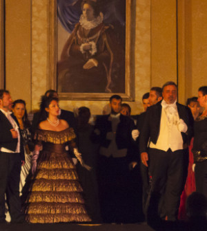 “Parenti, amici, amiche e camerieri”. Ohibò: e chi sono costoro? Piave scrive che il coro è composto da “Cavalieri, dame, Paggi, Alabardieri”. Non si parla di camerieri né di parenti. Nella stessa brochure, inoltre, si cita anche una banda in palcoscenico, che sarebbe stata diretta da Veaceslav Quadrini. Forse questa banda era assai ben mimetizzata: noi, infatti, non l’abbiamo proprio vista, benché ci trovassimo in seconda fila. Se, poi, ci si collega al sito dell’IrnoFestival, leggiamo la seguente frase tragicomica: «Un cast di protagonisti eccezionali daranno vita ai famigerati personaggi di Gilda, Rigoletto, Violetta, Alfredo, Azucena e Conte di Luna».