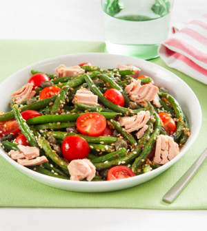 I fagiolini sono i baccelli immaturi della pianta del fagiolo comune (Phaseolus vulgaris), che è una pianta annuale nana o rampicante, originaria dell’America Centrale. Le sue origini come pianta addomesticata, si fanno risalire fra il 5000 e il 3000 a.c. Mentre in Europa arriva solamente in seguito alla colonizzazione dell’ America, da parte di spagnoli e portoghesi. Nonostante siano legumi, le proprietà nutrizionali e il loro aspetto caratteristico, li rendono di fatto, a tutti gli effetti, assimilabili a degli ortaggi. Ad oggi sono conosciuti con diversi nomi: cornetti, tegoline e fagioli mangiatutto, a seconda del dialetto e della regione di provenienza. Dal punto di vista nutrizionale presentano svariate proprietà benefiche per il nostro organismo. Innanzitutto, posseggono una grande quantità di acqua e un basso contenuto di carboidrati (2.4 grammi di carboidrati per 100g di prodotto). Questo li differenzia notevolmente dagli altri legumi come ceci, piselli e fagioli, nettamente più nutrienti, e li rende di fatto una scelta giusta nell’ambito di una dieta dimagrante, ma anche per chi soffre di diabete. Sono inoltre ricchi di vitamine (A,C,K) e di minerali come ferro, calcio, potassio, fosforo, magnesio e silicio. Hanno azione antiossidante (grazie alla presenza di betacarotene e della luteina), aiutando a combattere i radicali liberi e, grazie al buon apporto di fibra, contrastano la stitichezza e aiutano a tenere sotto controllo il colesterolo “cattivo”.Visto il momento critico di quarantena che stiamo affrontando, per combattere la fame nervosa, spesso e volentieri mi trovo a consigliare piatti unici che comprendano proteine, vitamine, sali minerali e carboidrati e che, essendo più abbondanti alla vista, riescono anche a trasmettere un maggior senso di pienezza. Ecco quindi che i fagiolini possono essere una valida alternativa, più salutare e leggera, rispetto alla classica insalata di riso.
