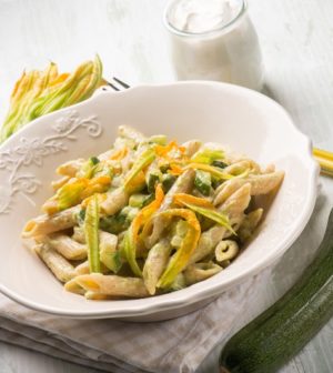 La zucchina è una specie appartenente alla famiglia delle Cucurbitaceae, in cui rientrano, fra gli altri, anche il cetriolo, il cocomero, il melone e la zucca. Non a caso le origini dalla zucchina (o zucchino), sono le stesse della zucca, cioè provengono dall’America Centrale, sebbene fosse già conosciuta e coltivata molto prima in Perù: alcune fonti addirittura parlano del 1200 a.C. Fu poi importata in Europa nel 1500 dagli Spagnoli e da quel momento si diffuse anche in Italia. Fu proprio nel nostro paese che, grazie a degli incroci, vennero “create” le varie tipologie di zucchine oggi esistenti in commercio e diffuse in tutto il mondo. Le zucchine sono fra le verdure meno caloriche esistenti e, per questo motivo, proposte assiduamente nelle diete dimagranti. Esse sono infatti povere di zuccheri e ricche d’acqua e fibre alimentari (sebbene contengano una quantità di fibra nettamente inferiore, rispetto ad altri vegetali). Per questo motivo hanno potere saziante e sono ideali non solo nelle diete ipocaloriche, ma anche nell’ambito di sindromi metaboliche. Le proteine, come per la maggior parte dei vegetali, sono di scarso valore biologico e il colesterolo è assente. Una delle più importanti proprietà delle zucchine è l’elevata digeribilità: esse, infatti, sono considerate fra gli ortaggi più facilmente digeribile dal nostro organismo. Non a caso molti pazienti che soffrono di acidità gastrica o problemi di digestione, riescono a mangiarle senza problemi. Dal punto di vista vitaminico le zucchine apportano un modesto contenuto di vit. C (che viene perso durante la cottura, ma mantenuto se le si mangia crude), di retinolo (vit. A) e di acido folico. Fra i sali minerali spiccano il potassio e il manganese. Oggi proponiamo un primo piatto gustoso in abbinamento ai fiori di zucca, che sono ricchi di calcio (39mg rispetto ai 21 delle zucchine per 100 grammi di prodotto), e quindi utili per combattere l’osteoporosi e per la salute di denti e ossa. Di seguito la ricetta (Ingredienti per 2 persona) 1) In una padella versare 1 cucchiaio di olio EVO (10 g) e uno spicchio d’aglio schiacciato. Versare 250 g di zucchine, precedentemente tagliate a cubetti, e lasciar cuocere, aggiungendo un mestolo d’acqua. 2) A fine cottura aggiungere una generosa manciata di fiori di zucca, precedentemente puliti e lavati. Aggiungere la pasta già cotta (100g) e mescolare gli ingredienti. In mezzo mestolo d’acqua di cottura sciogliere una bustina di zafferano e unirla alla pasta. Mescolare e, se di gusto, aggiungere 1 cucchiaio di pecorino romano.