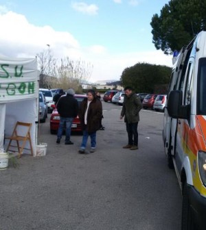 Rossella (50 anni) e Nicoletta (30 anni), che da 48 ore circa avevano cominciato lo sciopero della fame, stamattina hanno accusato un malore. Tempestivo l’intervento degli operatori di un’autoambulanza, che, pur essendo riusciti ad alleviare le pene di Nicoletta, hanno esortato Rossella, che si trova in condizioni più preoccupanti, a lasciare il presidio per essere trasportata al nosocomio “Santa Maria della Speranza” ed essere lì ricoverata. La donna, però, con un’immensa forza di volontà e con un grandissimo spirito di sacrificio, non ha voluto abbandonare il presidio. Si attende l’arrivo di un medico sul posto.