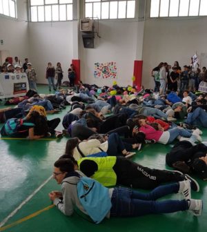 La simulazione di un attacco aereo con i suoni della sirena e di un bombardamento. Ha avuto inizio così la manifestazione Scuole in piazza per la pace in Siria che si è tenuta in diverse città d’Italia. Inizialmente, la location scelta era il Parco del Mercatello ma a causa della pioggia battente si è resa necessaria una veloce ma efficace riorganizzazione che ha permesso di ospitare i quasi 300 ragazzi provenienti da tutto il salernitano all’interno dell’istituto Amendola-Santa Caterina, suddividendoli tra palestra e Aula Magna. Tanti i cartelloni preparati dagli alunni per gridare il loro “no” alla guerra in Siria, come quello che recitava “Ho visto gli uomini ma non ho visto l’umanità”. Obiettivo della manifestazione era invitare a riflettere sull’immane tragedia della guerra in Siria, con le testimonianze di alcuni giovani siriani ed un simbolico flash mob per dire no alla guerra e sì alla pace e alla convivenza civile tra popoli.Tra i momenti più emozionanti, la simulazione di un attacco aereo che ha visto i ragazzi accovacciarsi per poi alzarsi, tenendosi per mano e realizzando il cerchio della pace. Presente anche il Comune di Salerno con la vice sindaco Eva Avossa: «Tanti ragazzi siriani non sentono più il suono della campanella. E’ importante che i giovani siano sensibilizzati ad una tragedia immane, non l’unica nel mondo. E’ luttuosa cronaca quotidiana e internazionale quella che proviene dalla Siria. Talvolta siamo assuefatti a certe immagini ed i ragazzi più di noi, perché attraverso i videogiochi vivono talvolta una realtà aumentata o virtuale. La virtuosa eccezione, però, è rappresentata dai ragazzi che si sono radunati oggi, in occasione del flash mob. Faccio i complimenti agli organizzatori perché attraverso le giovani generazioni è stato lanciato un messaggio di speranza ma anche di accoglienza e di impegno civile. Abbiamo tutti il diritto di vivere in pace ed i ragazzi hanno diritto al sorriso, al gioco, all’istruzione. Quelli siriani, invece, giocano con le armi», ha dichiarato l’assessore alla Pubblica Istruzione. Soddisfatta per la riuscita della manifestazione e la sentita partecipazione dei ragazzi anche la vice preside dell’istituto AmendolaSanta Caterina, la professoressa Rosanna Sabini: «Credo che la manifestazione sia andata bene ed i ragazzi sono stati molto partecipi, riuscendo a sensibilizzare tutti verso questa tematica. Siamo riusciti a far capire loro la fortuna che hanno di poter venire ogni giorno a scuola e sentire la campanella cosa che tanti ragazzi siriani non hanno conosciuto»