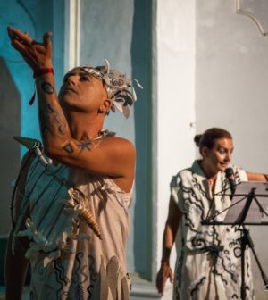 Un artista può compiere qualunque impresa, purchè tutto sia sacrificato alla sua arte, anche a carissimo prezzo. Al cantore che osò l’impossibile è stato dedicata “Orfeo – variazioni sul mito”, la performance di Marco Vecchio, su voce narrante di Brunella Caputo e luci e musiche di Virna Prescenzo, allestita presso la Chiesa di Sant’Apollonia nell’ambito de La notte dei Barbuti, sezione del Barbuti Festival. Sospeso tra canto e coreografia e circondato dai simboli più amati (un telo su cui campeggiano animali archetipici; il viaggio di una nave antica e un profilo femminile in un tondo, perché ogni viaggio è circolarità di affetti e affanni), l’Orfeo di Vecchio, che rivive con passione tutte le suggestioni del mondo greco, ha in sé l’innocenza del fanciullo e la seduzione dell’incantatore. La bianchissima testa di donna chiusa in una gabbia adornata da foglie a cui riserva tenera cura è certo rimando alla sposa, Euridice, ma anche correlativo oggettivo della sorte che lo attende: la fine di ciò che si ama è anche la propria. Con gesti evocativi, il protagonista crea un dialogo con la Caputo, narratrice profondamente empatica di una vicenda di desideri e sconfitte. Si volge alla partenza effigiata alle sue spalle, quando avviene l’addio all’amante: per chi non è più, il mondo dei vivi è un terra intangibile quanto l’Ade. Si pone come una statua sul più alto gradino nel momento in cui il dolore dei suoi versi si spande: ogni poeta innalza infatti a se stesso un piedistallo, quando traduce in opera quel che ha vissuto. Chi crea, immola la sofferenza all’eternità: è questo che accade quando Orfeo si volta, perdendo per sempre la moglie. Questa figura è presentata attraverso “Orfeo. Euridice. Hermes” di Rilke e “Il ritorno di Euridice” di Bufalino. La scelta dei testi evidenzia un destino beffardo. In Rilke, la sposa è una mite creatura che, nella pienezza della morte, non ha più memoria del passato e l’opprimente leggerezza della vanità trasfigura ogni cosa. L’Euridice di Bufalino non ha smarrito i suoi ricordi, che le donano una disarmante tenerezza, ma comprende amaramente come il poeta si sia voltato apposta. L’eroismo della catabasi è oscurato dall’egocentrismo di chi vuole il consenso dei posteri: la luce immortale dei versi nasce dal buio senza tempo di chi non ha più diritto a rinascere. Le mani dei due artisti, che si uniscono nella conclusione, vogliono riconciliare la vita e la morte, entrambe sacre e incomprensibili l’una senza l’altra.