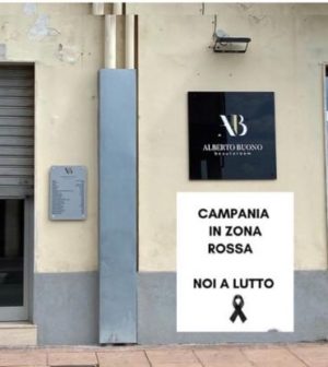 Saracinesca a metà ed un cartello a lutto per manifestare il suo dissenso contro la chiusura imposta dal governo. Alberto Buono ha aderito alla manifestazione del Cna… “Nella speranza di poter presto riuscire ad aprire. La nostra è stata una protesta pacifica che sicuramente ha fatto meno rumore rispetto a tante altre, ma era giusto che anche noi scendessimo in campo in questo periodo. Perchè quello che si sta verificando è davvero una cosa assurda. Ci hanno chiuso dopo che ci hanno fatto adeguare i nostri locali per renderli sicuri. Abbiamo investito soldi, abbiamo cambiato il nostro metodo di lavoro, accogliendo i clienti solo su prenotazione e poi alla fine hanno deciso di chiudermi, mentre invece se si va al supermercato si entra senza nessun controllo e senza che nessuno verifichi se si rispetta il distanziamento”.