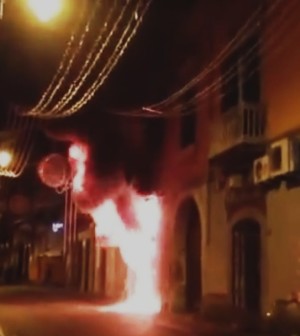 Completamente distrutto il negozio di patatine fritte. Danneggiato il bel palazzo sovrastante come pure le luminarie natalizie.