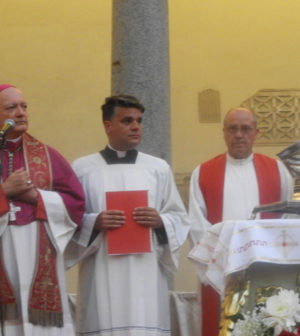 Anno domini 1544: il grande ammiraglio turco Ariodeno Barbarossa, con il favore del mare calmo, il 27 giugno annera con la sua flotta di navi e galee, il Golfo di Salerno. L’imminente saccheggio allarma le città di Amalfi e Salerno dove gli abitanti cercarono riparo lontano dai luoghi urbani. Tutto il popolo salernitano si rifugiò in parte verso la Cattedrale e in parte verso le mura per difendere la città. A pochi istanti dallo sbarco, quando  la flotta era ormai in prossimità della linea di costa, un fortissimo temporale affonda le navi dell’ardito navigatore, che incappa in quelle tempeste improvvise, in quei repentini cambiamenti di vento che mettono in grande difficoltà quanti navigano a vela, incrociando ancora oggi nel nostro golf . E’ questo il miracolo che è effigiato nel Panno che campeggia sull’entrata principale della Cattedrale. Ieri, in quella luce particolare, quando il sole cede alla luce della luna, il Panno, preceduto dal preziosissimo Braccio di San Matteo, è uscito dalla cripta, in processione, sulle note di Giocondità, eseguite dalla banda dell’Associazione Musikè di Pellezzano, per raggiungere l’atrio del Duomo e segnare così, l’inizio del mese di preparazione al grande rito del 21 settembre. La parola è stata presa da Don Michele Pecoraro, il quale ha “iniziato” a questa particolare festa, molto sfaccettata, il nostro nuovo Vescovo , Monsignor Andrea Bellandi, augurandoGli tanti anni di grazia, qui, sulla cattedra di Matteo. E’ semplice e diretta la parola del Parroco del Duomo. “Matteo – ha tuonato Don Michele – significa “Dio ha dato” ed è un dono di Dio. Perché diciamo Panno e non drappo? Perché il drappo è salottiero, mentre il panno è povero, umile e di uso comune, serve per pulire, pulisce dal Peccato. Ed è per questo che, in questo mese, dovremo accostarci ai Sacramenti della Confessione e della Riconciliazione. Inoltre, il Panno protegge, e questo in particolare, veglierà sulla nostra vita e sulla nostra fede”. L’intervento di Don Michele si è concluso con il saluto a Don Luigi Moretti e con l’augurio di pronta guarigione, con una citazione del discorso di San Giovanni Paolo II quando fu qui a Salerno sulla tomba di Papa Gregorio VII, il quale riferendosi al Vangelo secondo Matteo, affermò come sia quello che induce a profonda riflessione e commozione. Don Michele ha, quindi, con voce sicura, accompagnato dalla banda, elevato l’Inno di San Matteo. La parola è poi, passata al Vescovo. E’ questo il suo attesissimo debutto ufficiale. Il primo saluto è stato rivolto alle autorità civili e militari. Tra la folla, infatti una rappresentanza della Guardia di Finanza che ha scortato il panno, mentre il vessillo della città è stato scortato da donne, Eva Avossa, Antonia Willburger, Paky Memoli. Il  Vescovo ha sottolineato che questa è la sua prima Alzata del Panno e ha espresso la volontà di farsi discepolo di Matteo, come il suo popolo in adorazione. “Salerno è mia e io la difendo” il motto di San Matteo e l’analisi moderna di Andrea Bellandi è che se a metà del 1500 il pericolo veniva dal mare, oggi il pericolo non viene dalle onde e dalle spiagge, ma è nell’indifferenza, nella chiusura, nel sospetto, nel voler edificare mura, nello scettiscismo e, in particolare, nello smarrimento della speranza. Ritrovare la speranza significa ritrovare la fede. La vita non è facile, le malattie, gli ostacoli, le scelte sbagliate, le cadute, ci sono, ma la speranza non deve mai morire. “San Matteo deve farci sperimentare le beatitudini del Vangelo e la volontà di ricercarLo non deve durare solo un mese, ma l’intero anno. Ricordate che l’altro, il diverso, è sempre un bene ed è un’occasione unica di tirare il meglio da se stessi, quindi no agli egocentrismi, agli egoismi, alle invidie, che sono l’anticamera dell’Inferno, delle divisioni”. Significativo lo stemma episcopale scelto da Monsignor Bellandi, che campeggia al lato del Panno, insieme a quello di Papa Francesco: una penna d’oca per scrivere, dei grappoli d’uva e la spiga che inorgogliscono i campi se ben curati, iconografia dell’Eucarestia, al centro un segno azzurro, l’acqua, purificatrice il mare,  il suo fiume, simbolo di cultura e civiltà, l’oro la nobiltà, l’argento, la verità e la giustizia, il motto “Visus est et vidit”, sintesi dell’incontro di Gesù e Zaccheo, attraverso la lente di Sant’Agostino. Finale con bengala, cascate, ventagli, fuja fuja, segno che, forse, le polemiche su entrate, fuochi, e giravolte, per quest’anno saranno in minor tune.