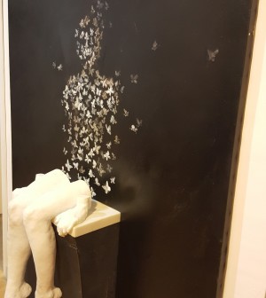Un caleidoscopio di emozioni. Se dovessimo trovare una definizione, questa sarebbe la migliore per la mostra Biennale d’Arte Contemporanea che è stata inaugurata sabato sera, a Palazzo Fruscione, fortemente voluta dall’amministrazione comunale e curata da Olga Marciano e Giuseppe Gorga, un modo di animare il cuore di Salerno, alla vigilia della grande kermesse delle luminarie. Numerosi gli artisti paganti per avere accesso agli spazi, al concorso e in particolare al catalogo in vendita a 40 euro, anche nella giornata inaugurale, e numerose le difficoltà per poter ammirare le molteplici, e anche interessanti, opere d’arte presenti alla mostra: sale sovraffollate, prive di controllo (ammirevole il tentativo delle giovani studentesse del liceo Alfano I), un solo ascensore a disposizione, non potendo così abbattere le barriere architettoniche. Appena entrati ci si accorge di un altro problema: tutte le opere mancano di titolo e descrizione, lasciando spazio solo al nome dell’artista: è giusto porre l’attenzione sugli artisti, ma è altrettanto giusto che una persona che guarda l’opera sappia almeno come si chiami. Le opere sono tutte interessanti, e uno dei punti di forza della mostra è il poter confrontare opere italiane con opere straniere, in alcuni casi persino di altri continenti, così come quelle di artisti affermati come ad esempio le illustrazioni per il Don Chisciotte di Mimmo Paladino o le creazioni di Jannis Kounellis, Mimmo Paladino, Mimmo Rotella, Giosetta Fioroni.Da segnalare è sicuramente l’opera di Park Seung Wan, concepita secondo la doppia tecnica della scultura e della pittura. Una donna seduta su un gradino, nulla più di questo, ma il busto è dipinto e composto integralmente da farfalle, simbolo di leggerezza; le gambe, scolpite, riportano chi guarda con i piedi per terra, fondendo lo straordinario senso di leggerezza con la solidità della realtà. Di denuncia, e anche forte, è l’opera di Laura Larocca, esemplare connubio di immagini e video: lo spettatore viene invitato ad osservare una pianta, la camalotes, proiettata sul proprio corpo. Questa pianta è straordinariamente preziosa per gli animali e per la purificazione dell’acqua, riuscendo a liberarla dai materiali pesanti. Eppure nell’immaginario umano questa pianta è una piaga, quindi proiettandola sul corpo del visitatore l’artista spera di far capire all’uomo l’errore che commette di continuo. Un’altra intuizione da segnalare è il capolavoro di Anna De Rosa: un omaggio alle gemelle di Shining del compianto maestro del cinema Stanley Kubrick. Il dipinto di per sé non rivela particolari da segnalare, ma dopo una breve chiacchierata con l’artista – una delle poche presenti – emerge che è stato dipinto con cosmetici riciclati: una trovata assolutamente geniale, che fa sì che l’opera diventi spunto per riflessioni audaci. Il maestro Lucio de Simone, invece, ci dà la rappresentazione di un’arca, recante al lato la scritta “L’Umanità”, ma su cui non c’è nessuno. Dal mare su cui viaggia si intravedono delle braccia, e là dove il mare diventa rosso, perché sporco di sangue, le braccia non cercano più un aiuto, ma sono ormai prive di qualsiasi spinta vitale. Fa molto riflettere quest’opera, che fa tornare in mente ai più attenti il brano “Blu” di Irene Fornaciari, escluso all’ultimo Festival di Sanremo. Un’ultima menzione la merita l’artista Regina Senatore, che ha creato un omaggio ad Agostino Bonalumi, artista scomparso nel 2013, celebre per essere quasi l’antitesi di Fontana: come Fontana tagliava le tele per andare al di là di esse, così Bonalumi sembra far emergere le sue opere dalla tela. L’artista salernitana gli ha reso omaggio con una serie di pannelli di rame sbalzato, ricordando le tecnica del maestro. Per il resto poco altro di interessante e tanta, forse troppa confusione. Una bella iniziativa: magari evitare di far masticare cibo durante la visita sarebbe più rispettoso per gli artisti, ma soprattutto per l’Arte.