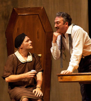 Questa sera alle ore 21 e domani alle ore 18,30, il regista Francesco Saponaro firma un doppio appuntamento con il teatro di Eduardo De Filippo, sul palcoscenico del teatro Verdi, ospite del segmento drammaturgia contemporanea, giunto al suo ultimo appuntamento. In scena ‘Dolore sotto chiave’ e ‘Pericolosamente’, due atti unici realizzati nel trentennale della morte dell’artista, interpretati da Tony Laudadio, Luciano Saltarelli e Giampiero Schiano. Una nuova produzione della compagnia napoletana Teatri Uniti, che tornerà al Piccolo a novembre con ‘Le voci di dentro’ e ad aprile con ‘La parola canta’ insieme ai fratelli Servillo. Nato come radiodramma nel 1958, ‘Dolore sotto chiave‘ viene portato in scena da Eduardo De Filippo nel 1964 (insieme a Il berretto a sonagli di Luigi Pirandello) per la riapertura del Teatro San Ferdinando di Napoli e nel 1980 (insieme a Gennareniello e Sik-Sik) con Luca De Filippo e Angelica Ippolito. Ambientato nella casa borghese dei fratelli Capasso, l’atto unico ‘Dolore sotto chiave‘ intreccia commedia e dramma, in un’atmosfera grottesca e a tratti paradossale. Elena, moglie di Rocco e malata da tempo, muore mentre lui è in viaggio in Sardegna. La sorella di Rocco, Lucia, non vuole metterlo al corrente della triste notizia, mentre lui non aspetta altro in quanto è innamorato di un’altra donna. Per evitargli il dolore, Lucia impedisce a Rocco di entrare nella camera da letto dei due, adducendo una terribile malattia che renderebbe fatale ad Elena ogni minima emozione. Intanto l’amante di Rocco, incinta e stufa di aspettare che l’uomo lasci la moglie, sposerà un altro a Londra. Quando Rocco lo scopre, fa per entrare nella stanza della moglie per ucciderla e scoprirà l’inganno. “Dolore sotto chiave parte da un’intensa ispirazione pirandelliana. Il tema della morte incombe silenzioso e il dolore del lutto viene nascosto e soffocato da un gioco sottile di ricatti e sottintesi: i buoni sentimenti come la carità cristiana, la compassione o la mania borghese della beneficenza diventano armi improprie per dissimulare, negli affetti, quella segreta predisposizione dell’essere umano al controllo e al dominio sull’altro“. L’ispirazione pirandelliana del testo viene sottolineata dall’ouverture con cui Saponaro decide di introdurre la pièce: l’adattamento in versi e in lingua napoletana della novella del 1914 di Luigi Pirandello ‘I pensionati della memoria‘. La rivoltella, oggetto-simbolo di ‘Dolore sotto chiave‘, si materializza in ‘Pericolosamente‘, testo del 1938 giocato sul leitmotiv eduardiano della lite coniugale. Adattato per il cinema, la pièce diventa ‘L’ora di punta‘, uno degli episodi del film ‘Oggi, domani e dopodomani‘ (1965), con Marcello Mastroianni, Luciano Salce e Virna Lisi.
