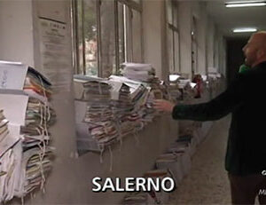L’inviato di Striscia la Notizia Luca Abete ha fatto tappa a Salerno per rendersi conto della situazione degli Uffici del giudice di Pace. Gli uffici sono alloggiati da anni negli edifici di una scuola superiore in coabitazione con gli studenti. L’inviato del tg satirico di Canale 5, ha fatto un giro all’interno riscontrando uno stato di confusione generale con faldoni sparpagliati un pò ovunque ed una situazione di disagio generalizzata. La ricerca dei fascicoli avviene a terra mentre vengono usate sedie come carrelli per il trasporto della documentazione ammassata in scaffali di fortuna senza un ordine apparente. La presenza degli uffici del giudice di Pace all’interno di una scuola è una situazione inverosimile che non tiene conto nemmeno delle più elementari norme di sicurezza – dice un dipendente intervistato da Luca Abete.