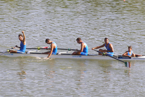 La gara è stata dominata fin dalle prime battute dal team azzurro. Appena insidiato alla partenza dall’equipaggio tedesco, il quattro con azzurro già ai 400 metri ha preso il comando ed è passato primo ai 500 metri. Germania e Nuova Zelanda continuano a stare attaccate, ma i 39 colpi del quattro con azzurro, un ritmo veramente alto considerato il caldo e l’acqua piatta del campo di gara, non lasciano spazio agli avversari. Ai 1500 metri l’Italia è ancora prima anche se la nuova Zelanda si fa pericolosa, ma in finale l’armo azzurro ha la meglio e l’Italia conquista la prima medaglia del mondiale under 23 2013. Oro all’Italia e oro al Circolo Canottieri Irno.