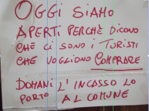 Se l’assessore annuncia numeri positivi, nel centro storico c’è chi, invece, annuncia il flop turistico del 15 agosto. Si tratta di “Sogni d’Arte” di via Mercanti, la cui proprietaria Adalgisa De Angelis, su un cartello provocatorio ha scritto: «Oggi siamo aperti perché dicono che ci sono i turisti che vogliono comprare. Domani l’incasso lo porto al Comune».