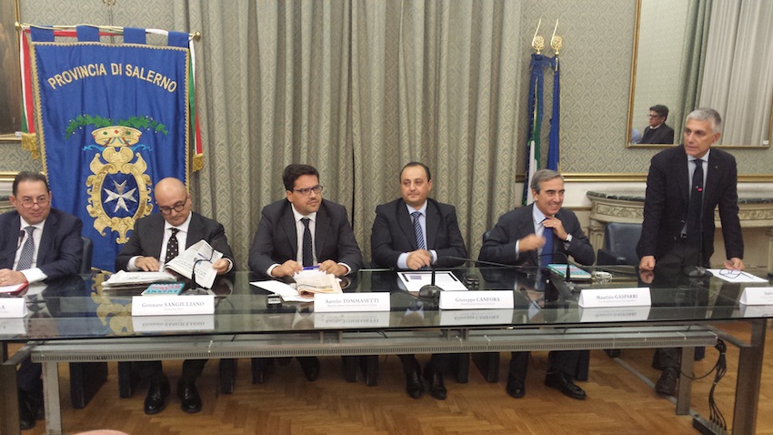 “Siamo al guinzaglio della Merkel la quale evidentemente fa gli interessi della Germania, non i nostri, e quindi proseguiamo nel nostro rapido, inarrestabile declino. Siamo noi che non siamo capaci di darci una Merkel italiana che oggi non c’è all’orizzonte. Forse dobbiamo accettare l’idea che di fronte al Quarto Reich, pur criticandolo, c’è solo da restare ammirati”. A spiegare come la Merkel sia riuscita laddove Hitler ha fallito, ottenendo il dominio sul continente non con i panzer, ma attraverso l’Euro, in una maniera meno violenta ma perfino più opprimente, e stato Gennaro Sangiuliano, giornalista e scrittore, vicedirettore del Tg1, che ancora una volta ha scritto un libro insieme Vittorio Feltri, editorialista del “Giornale” :”Il Quarto Reich. Come la Germania ha sottomesso l’Europa”, edito da Mondadori, che è stato presentato ieri sera nel Salone Bottiglieri” del palazzo provinciale, alla presenza del Consigliere Provinciale Carmine Stanziola, che ha portato i saluti del Presidente della Provincia, Giuseppe Canfora; del Senatore Maurizio Gasparri; del Parlamentare Europeo, Gianni Pittella; del professore universitario di Diritto Privato all’Università di Salerno, Salvatore Sica, che ha moderato la serata, e del Rettore Aurelio Tommasetti, che ha pensato di organizzare l’incontro:”Università, Mezzogiorno, Europa. La crisi vista dal Sud”. Tutti insieme hanno animato un interessante dibattito sul libro nel quale Feltri e Sangiuliano, spiegano come sono cambiati i rapporti di forza in Europa negli anni della moneta unica e come la Germania abbia accresciuto la sua potenza politico-economica. “Da quando c’è l’euro l’Italia ha perso nove punti di PIL e il suo grande apparato tecnologico industriale è in dismissione, abbiamo il 43% di disoccupazione giovanile e il 12 % di disoccupazione totale. Gli italiani devono riflettere sul rapporto con l’Europa che è diventata un “Quarto Reich” cioè una struttura di dominio della Germania. Dobbiamo stare in Europa con la schiena diritta, affermano la nostra identità. L’Italia deve ritornare ad essere un Paese normale”, ha affermato Sangiuliano che ha precisato:”Se per i cittadini tedeschi l’era del Quarto Reich significa benessere, lavoro e crescita, per le altre nazioni, soprattutto del Sud Europa, vuol dire povertà, disoccupazione e recessione. Come sperimentano ogni giorno sulla loro carne viva milioni di europei, stretti nella morsa di una crisi economica decisamente più grave e prolungata di quella del 1929″. Il Rettore Tommasetti, ha ricordato che nella graduatoria del “Sole 24 Ore”” l’Università di Salerno è stata classificata come il primo ateneo del Sud”, commentato i contenuti del libro di Feltri e Sangiuliano e sottolineato l’importanza di recuperare il ruolo della politica. Il Parlamentare Europeo Gianni Pittella, ha ribadito l’importanza di parlare di più di Europa e che non c’è una egemonia tedesca, ma una debolezza dell’Europa:” Non dobbiamo temere la Merkel, ma dobbiamo sfidarla sul terreno dell’Europa politica. E’ necessario fare con lei un compromesso politico rigido”. Il Senatore Maurizio Gasparri, ha constatato che:”La Germania, purtroppo, per la sua decisione e coesione, riesce a imprimere le sue logiche alla costruzione europea, ma forse e’ più colpa dei difetti degli altri popoli che non merito dei pregi della Germania. Con la crisi che oggi perdura, forse anche la Germania dovrebbe riflettere sugli effetti della propria arroganza sulla costruzione europea. Noi più che lamentarci di loro, dobbiamo rimboccarci le maniche e ripristinare quel prestigio che l’Italia ha sempre avuto in tutta la sua storia. Cerchiamo di recuperare l’orgoglio italiano”.