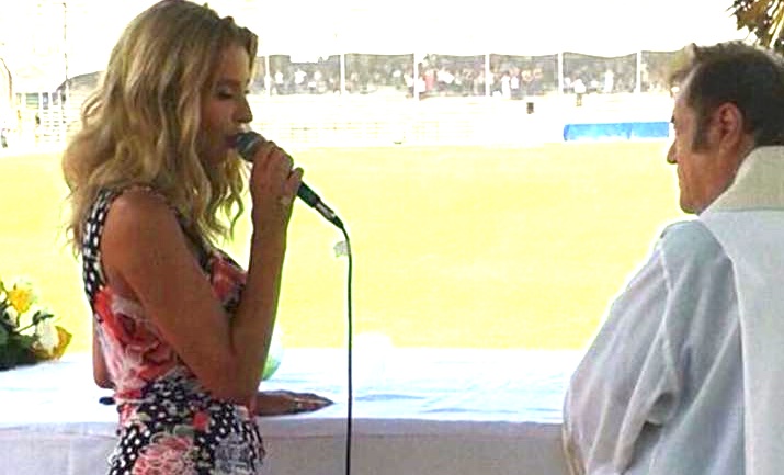 Anche Valeria Marini ieri tra i partecipanti del 30esimo Congresso del Rinnovamento Carismatico dei Servi di Cristo Vivo, Associazione Internazionale di Diritto Pontificio svoltosi all’Arechi. La sorella del fidanzato, Antonio Brosio, è una seguace.