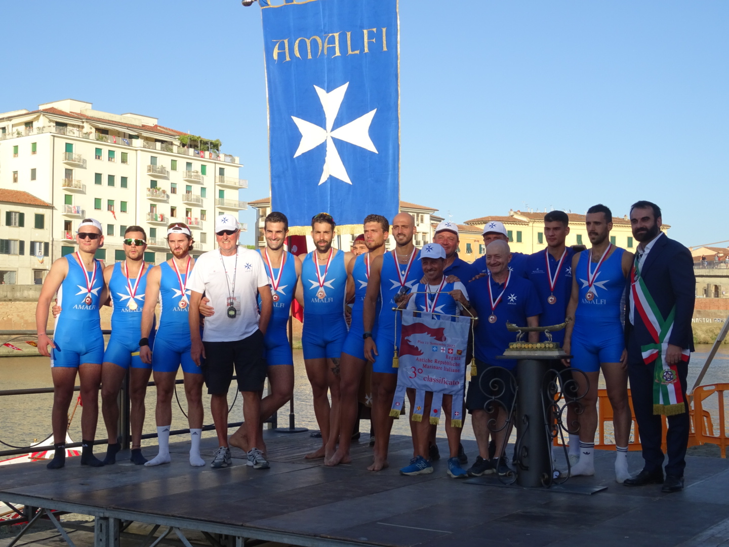 L’equipaggio di Amalfi, guidato dal timoniere Vincenzo di Palma e allenato da Antonio La Padula ha difeso strenuamente i colori azzurri giungendo però terzo al traguardo dopo un testa a testa finale con Pisa, che ha tagliato per ultima il traguardo. A Luigi Lucibello (capovoga), Luca Parlato, Aniello Sabbatino, Giovanni Ruocco, Andrea Maestrale, Mario Paonessa, Alberto Bellogrado e Luigi Proto (riserve Antonio Zaffiro e Gabriele Amato) va il ringraziamento dell’Amministrazione Comunale guidata dal sindaco Daniele Milano, e dell’intera Città per aver dato il massimo nella competizione svoltasi questo pomeriggio sull’Arno.