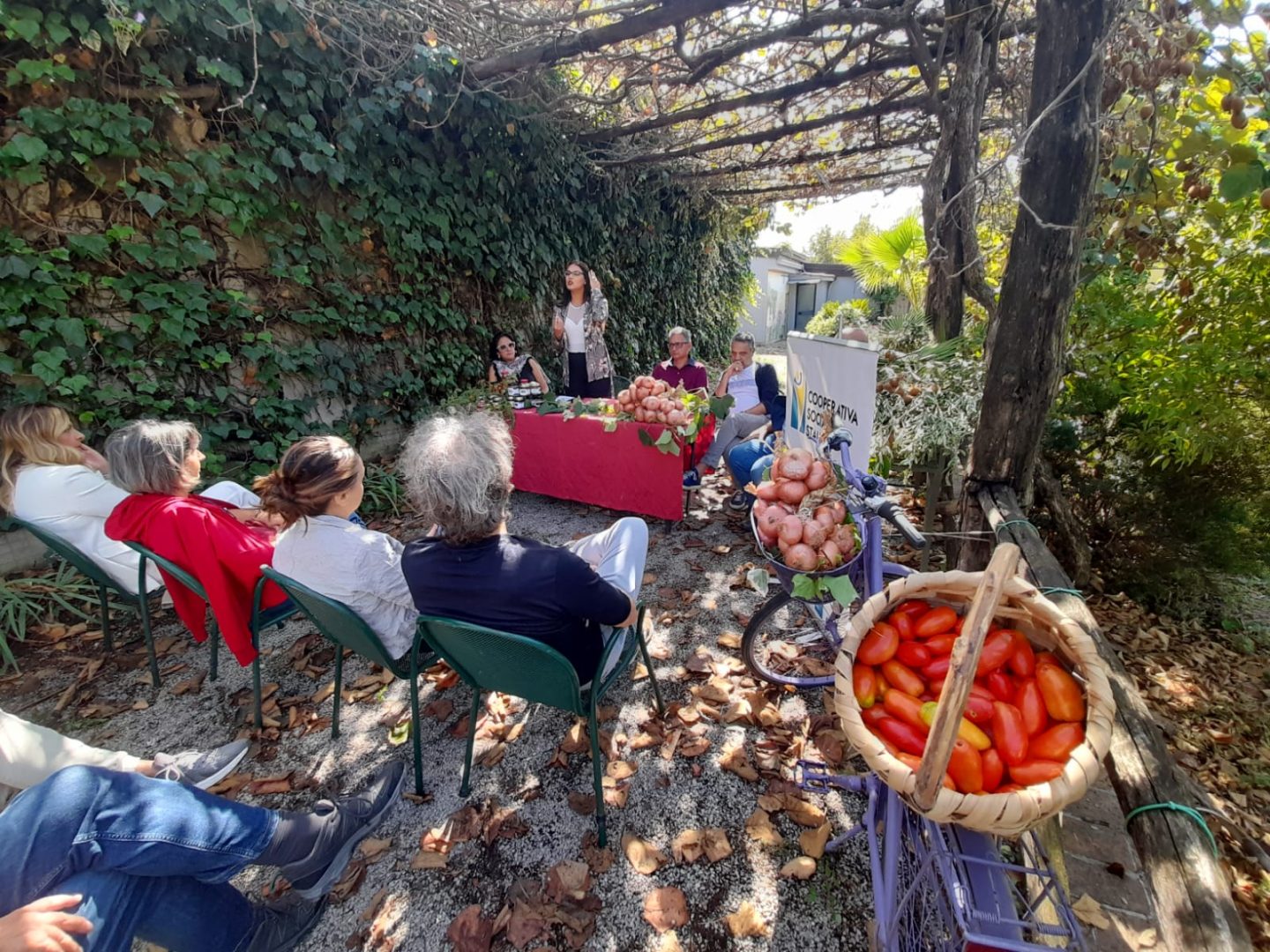 La cooperativa ha coltivato il pomodoro S.Marzano e, dopo la raccolta, ha organizzato un momento conviviale.
