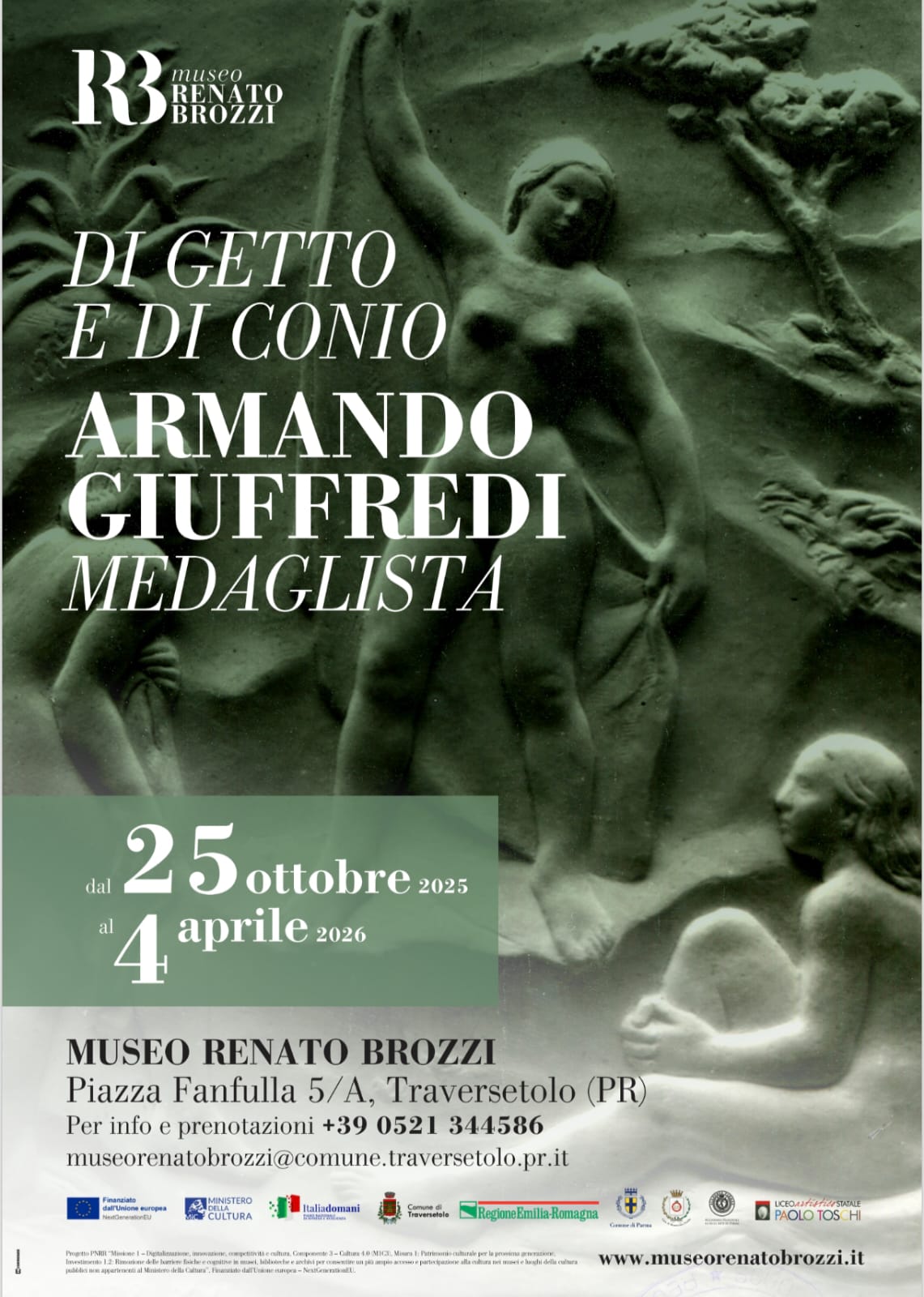 Dal 25 ottobre 2025 al 4 aprile 2026 il Museo Renato Brozzi, a Traversetolo (PR), ospiterà una mostra dedicata all’attività di medaglista dello scultore Armando Giuffredi (Montecchio Emilia, 1909 – 1986), che lo stesso Brozzi ebbe come caro amico e stimò molto come artista.