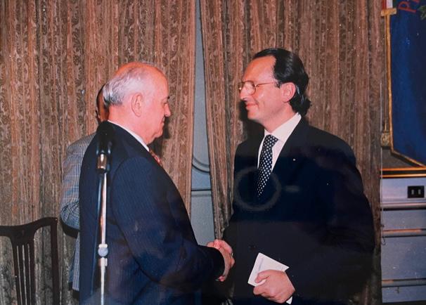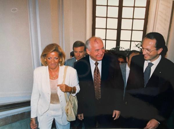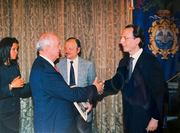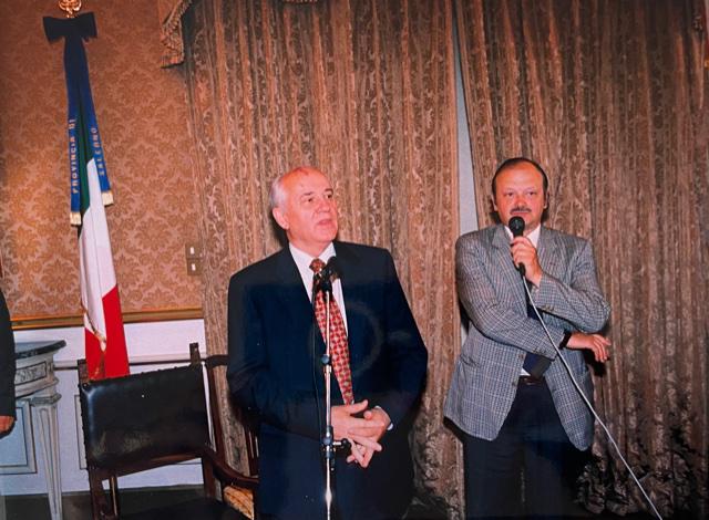 Quando nel luglio del 1997 accolsi Mikhail Gorbachev all’ingresso del Palazzo Sant’Agostino, sede istituzionale della Provincia, sapevo di trovarmi al cospetto di un personaggio che ha cambiato la storia del mondo ma non immaginavo che si sarebbe stabilito, in pochi istanti, un rapporto di confidenza grazie alla straordinaria sorprendente semplicità dell’uomo, alla sua disponibilità, al suo sorriso. Aveva già reso visita agli altri rappresentanti istituzionali – il Prefetto dell’epoca Natale D’Agostino, il sindaco Vincenzo De Luca – prima dell’incontro nel salone di rappresentanza della Provincia con tutte le autorità locali, con i Sindaci del Salernitano e i Consiglieri e Assessori Provinciali. Tutto ciò fu la felice conseguenza di un invito che Claudio Gubitosi, a nome del Giffoni Film Festival, aveva formulato già qualche anno prima al Presidente: la perseveranza e la tenacia di Claudio furono premiate!