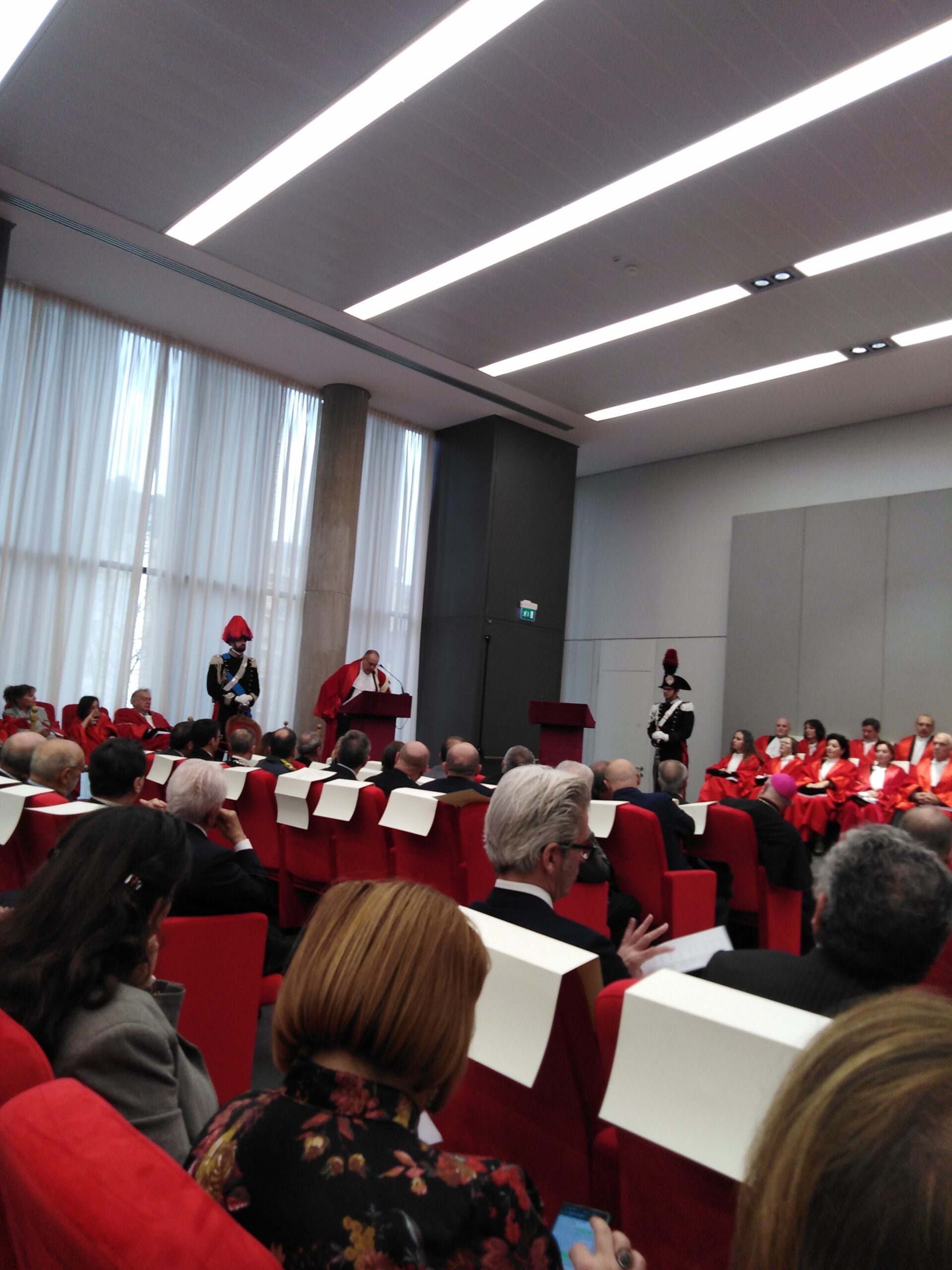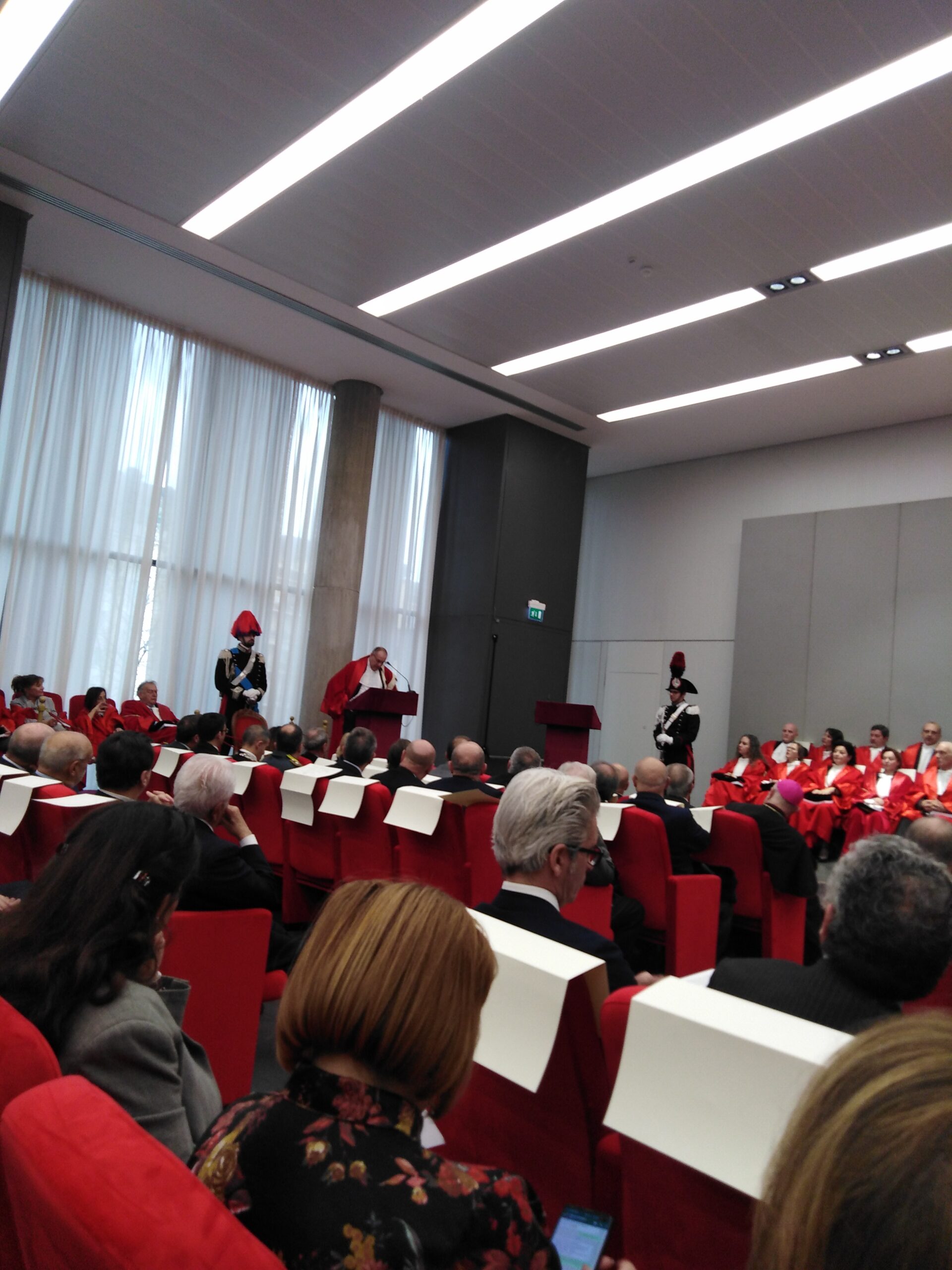 La Corte di Appello di Salerno è prima in Italia per quanto concerne la durata media del giudizio penale d’Appello. Si apre con un primato l’anno giudiziario presso la Corte di Appello di Salerno. Prima cerimonia in assoluto presso il nuovo Palazzo di giustizia progettata da David Chipperfield. La durata del processo penale di secondo grado è inferiore alla media europea. I dati emergono dalla relazione sull’amministrazione della giustizia nel distretto della Corte di Appello di Salerno. Relazione illustrata ieri mattina dal presidente della Corte di Appello di Salerno, Iside Russo in apertura della cerimonia di inaugurazione dell’Anno Giudiziario. Stando ai dati diffusi, al 30 novembre scorso, sono 353 i giorni di media per la definizione dei processi ordinari, 244 per i procedimenti a carico di minorenni, 312 per la Corte di Assise. Diminuiscono del 48,6% le sentenze di prescrizione dei reati in secondo grado, passando da 626 del 2016 alle 322 del 2019. Il presidente Iside Russo ha precisato che entro la fine di marzo, sarà completato il trasferimento di tutti gli uffici giudiziari. La realizzazione dei nuovi edifici “ha permesso di porre fine alle locazioni passive con un risparmio di spesa pari a circa 250mila euro annui”, si legge nella relazione del presidente della Corte d’Appello, che sottolinea come nei nuovi uffici sia presente un impianto fotovoltaico per la produzione di energia, “l’unico caso in Italia riguardante gli uffici giudiziari”. In Appello, è stato smaltito tutto l’arretrato civile previsto nel piano di gestione; infatti, la definizione da parte delle sezioni civili è pari al 135,7% dei procedimenti ultrabiennali. Quindi, -si legge nella relazione del presidente della Corte di Appello – delle 3.456 pendenze presenti al 31 dicembre 2018, ne restano 1.947 un anno dopo. Il tribunale per i Minorenni evidenzia l’incremento “significativo” degli arresti e delle misure cautelari. Sempre nel tribunali per i Minorenni si registra un aumentano dei procedimenti penali per il reato di associazione finalizzata al traffico di stupefacenti. “L’uso spasmodico fatto dai minori della rete, l’utilizzo dissennato dei social network per fare nuove conoscenze, l’esibizionismo giovanile unito all’incapacità di rendersi conto dei rischi del web sono i fattori posti a fondamento dei reati sessuali commessi dai minori che spesso non si rendono neanche conto del disvalore delle proprie azioni”. E, ancora si legge nella relazione sono “particolarmente allarmanti” i fenomeni del bullismo e delle baby-gang. La presenza della criminalità nel salernitano. Nell’agro nocerino sarnese prevalgono per numeri rapine, furti, truffe informatiche e spaccio di droga; a Salerno nei Picentini, nella Valle dell’Irno e nella Piana del Sele si segnala “l’estrema fluidità degli equilibri e delle dinamiche dei vari gruppi criminali”; in costiera amalfitana, nel Cilento e nel Vallo di Diano, vi è una “latente presenza di organizzazioni criminali attive nel settore degli appalti pubblici”. Il Cilento e il Vallo di Diano, in particolare, sono “luoghi preferiti di latitanza dei camorristici napoletani e casertani”. Li’, lo spaccio di droga è gestito da “consorterie ‘ndranghetiste”. Dalle relazioni delle forze dell’ordine, viene fuori “un affievolimento dell’effettiva operatività criminale dei clan, tanto da poter affermare che quelli dotati di concreta e costante operatività sono in numero inferiore rispetto a quelli censiti”. I dati statistici fotografano, poi, un aumento, nella fase delle indagini preliminari, di reati quali i maltrattamenti e lo stalking. «Ci auguriamo che con questo maggior numero di aule e con la rideterminazione della pianta organica, sono previsti 12 magistrati giudicanti e requirenti nel distretto di Salerno, se ci sarà anche un ampliamento del personale amministrativo, potremo avere anche la possibilità di fare più udienze. Per il personale amministrativo ho avviato un monitoraggio nei primi mesi del 2019 e nel 2020 perderemo in tutto il distretto 60 unità di personale amministrativo. Contiamo sul concorso per personale giudiziario che è stato indetto”.