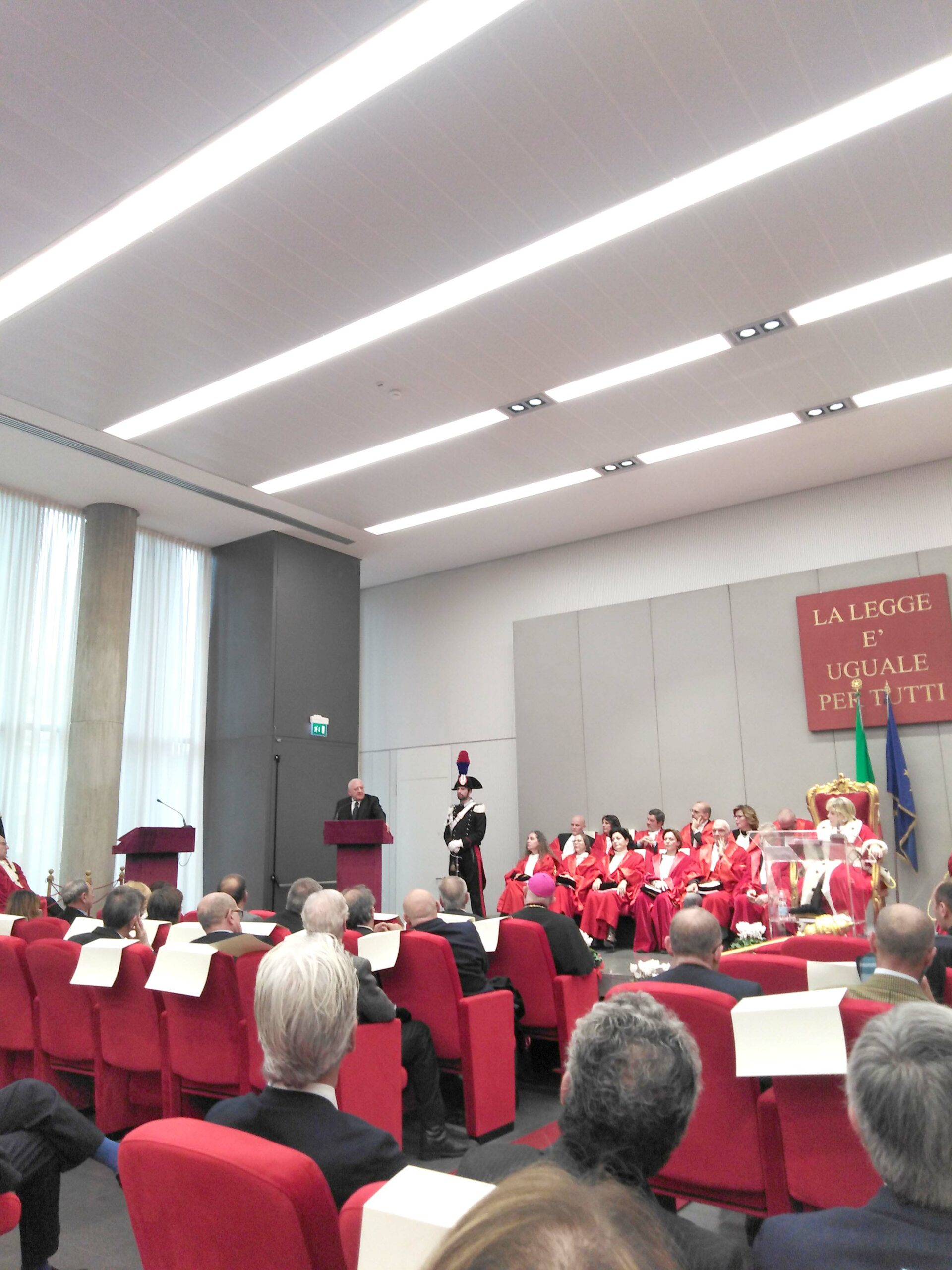 «Sono quello che ha deciso di fare qua la cittadella, c è voluto coraggio per individuare quest’area. E’ stato un lungo calvario, ce l’abbiamo fatta e siamo soddisfatti». Esordisce così il governatore della Regione Campania all’inaugurazione dell’Anno giudiziario della Corte di appello del distretto di Salerno. Una presenza inaspettata la sua, considerate le assenze degli anni passati. Sicuramente, non poteva mancare alla prima inaugurazione celebrata nel nuovo Palazzo di Giustizia. Subito dopo il Governatore si è congratulato con il presidente Iside Russo per il primato raggiunto dalla Corte di Appello di Salerno «Ma, non si aspetti riconoscimenti dall’Italia» ha sottolineato rivolgendosi al presidente Russo. «Mi auguro che non vada avanti questa scellerata riforma ipotizzata di eliminazione della prescrizione. Non si può scaricare sui cittadini il ritardo e l’inefficienza del sistema giustizia nel nostro Paese. Questo mi sembra un passo clamoroso e inaccettabile verso l’imbarbarimento giudiziario dell’Italia. Rischiamo di produrre effetti opposti. Einaudi diceva: per fare leggi bisogna conoscere. La conoscenza oggi è un optional». Poi ha aggiunto: «C’e’ un problema che a mio parere resta irrisolto. Il rapporto tra giustizia amministrativa e penale. Una grande questione che l’opportunismo politico della classi dirigenti non riesce ad affrontare e risolvere. Per De Luca “non è possibile confondere piano amministrativo e piano penale, non è possibile tenere in piedi una figura di reato come l’abuso in atto d’ufficio che è assolutamente indefinita e che non distingue tra un percorso amministrativo che può essere sbagliato e quelli che sono i ladri anche nella pubblica amministrazione. Questo crea un clima di paura e di preoccupazione per cui ormai in Italia nella pubblica amministrazione nessuno firma niente per paura d’incorrere in questo reato. Mi auguro che nella nuova stagione si affronti questo problema e si chiarisca la differenza tra piano amministrativo e piano penale”.