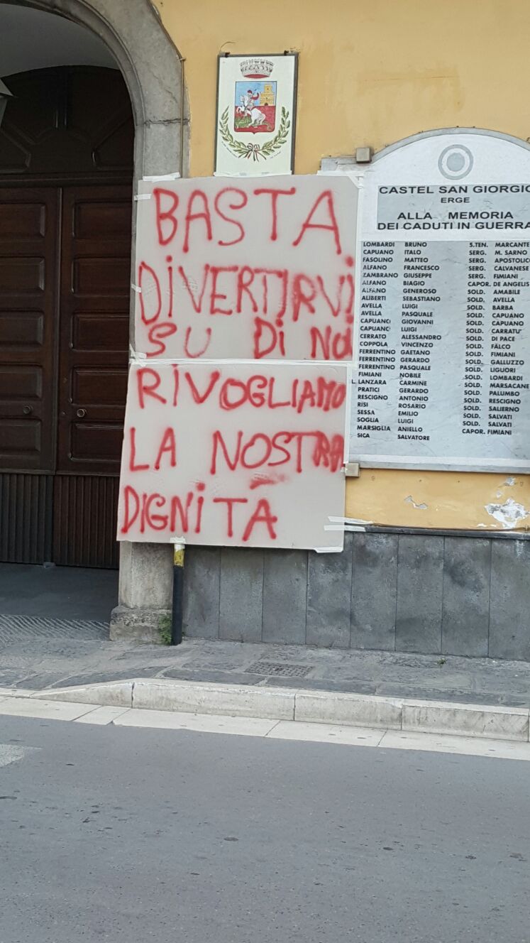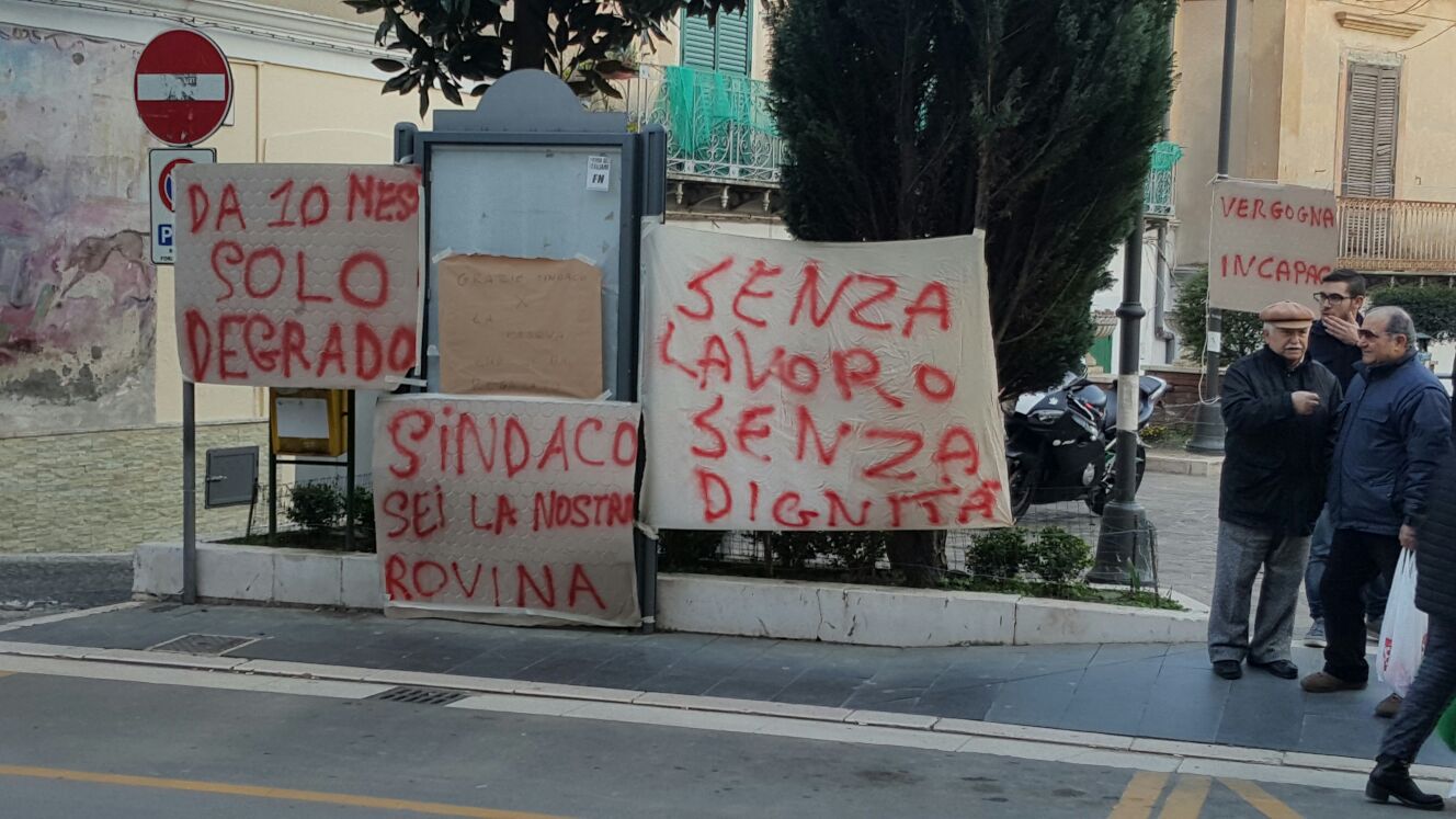 La nuova ditta, la Tecnonew s.r.l., non avrebbe rispettato la clausola, impiegando soltanto 10 dei 23 lavoratori. Per questo motivo gli operai, ingiustamente tagliati fuori dal nuovo contratto, hanno deciso di occupare il Comune per tutta la giornata di giovedì. Alle prime luci dell’alba di ieri hanno ripreso la loro postazione, esponendo all’ entrata del Comune uno striscione in segno di protesta: “Basta divertirvi su di noi, rivogliamo la nostra dignità”. Il sindaco, atteso in mattinata, è giunto alla casa comunale solo nel primo pomeriggio, per discutere con i consiglieri e il funzionario Teresa Montefusco sul da farsi.