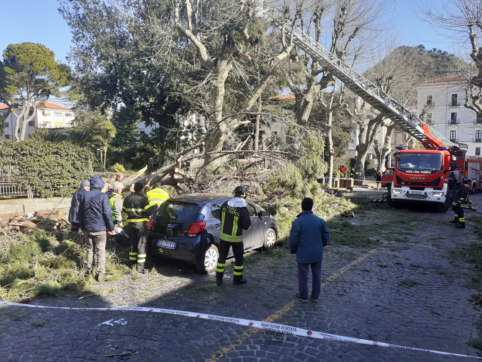Gioacchino Mollo, noto oculista di Cava de’ Tirreni, classe ’59 è la vittima di Cava de’ Tirreni. L’uomo ha perso la vita dopo essere stato letteralmente travolto da un pino secolare, questa mattina alle 8.15, mentre passeggiava, con il suo cane, lungo viale Crispi. La strada in questione, infatti, conduce a due licei e ad una scuola materna. A far crollare il pino le forti raffiche di vento che, da questa notte, si sono abbattute su tutto il territorio provinciale. L’albero, di fatti, ha colpito l’inferriata della villa comunale, creando un buco nella recinzione di quasi tre metri; il pino ha poi travolto la macchina, la multipla del dirigente comunale Francesco Sorrentino. L’albero, nell’abbattersi, ha travolto il furgoncino della Metellia Servizi, con due operai a bordo, lievemente contusi ed una piccola utilitaria, la cui conducente è all’ospedale Santa Maria dell’Olmo di Cava de’ Tirreni. La villa comunale era chiusa da due giorni, per allerta meteo, così come il cimitero. Gli alberi interni erano stati periziati dall’ufficio tecnico e dagli agronomi incaricati lo scorso 4 dicembre; alcuni sono stati tagliati ma secondo la perizia, il pino in questione non era pericolante. Nello schianto, l’albero ha travolto l’oculista che ha perso la vita sul colpo, identificato attraverso il microchip del cane che, come di consueto, portava a passeggio la mattina presto. Mollo lascia tre figlie e la moglie, Rosanna Avagliano, classe ’63, insegnante presso la scuola elementare a Santa Maria del Rogo. Vigili del fuoco e protezione civile sono riusciti ad estrarre il corpo dell’uomo solo dopo due ore di lavoro. Il cane, ferito, è stato affidato alle cure degli operatori del canile comunale.