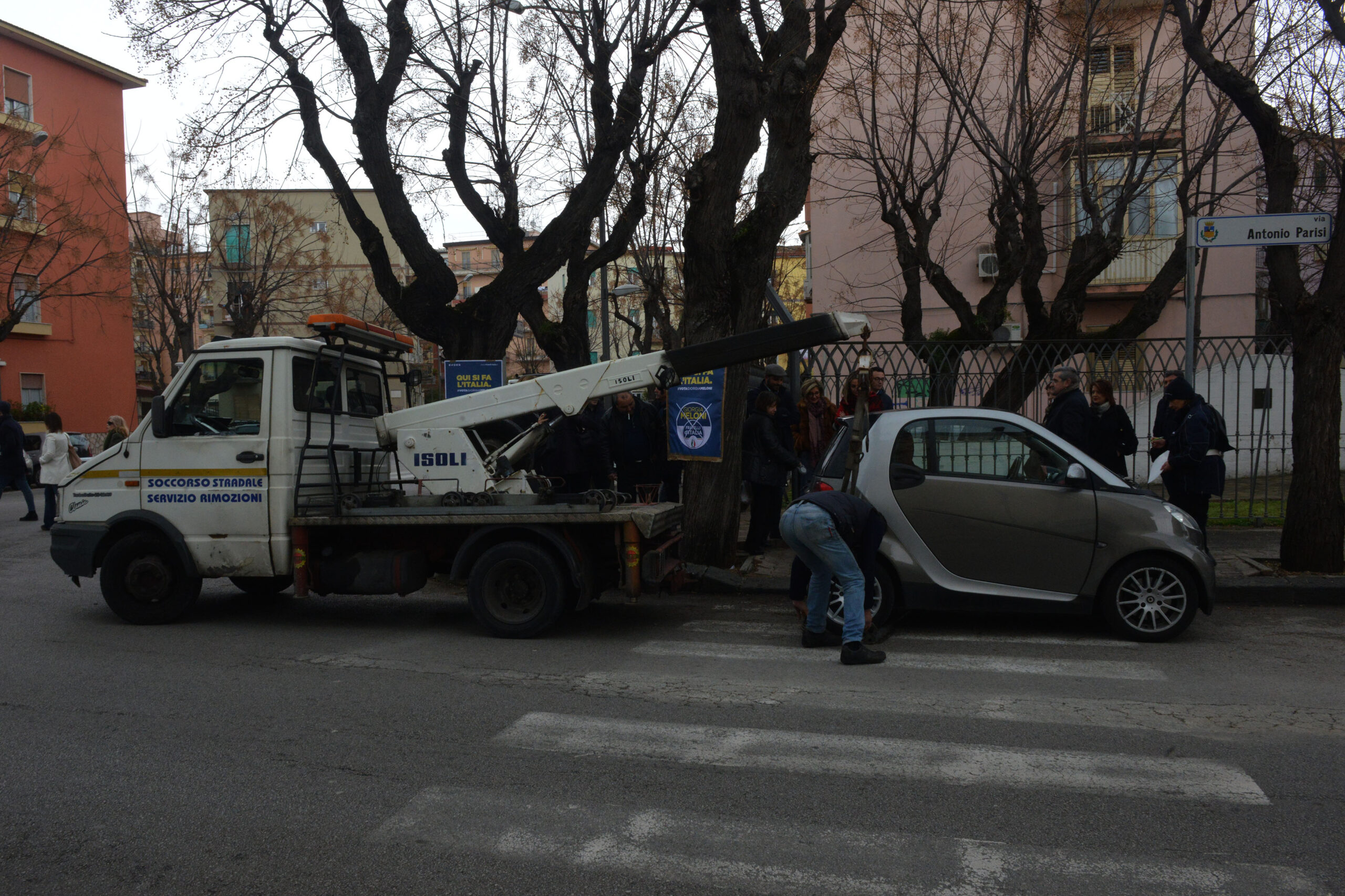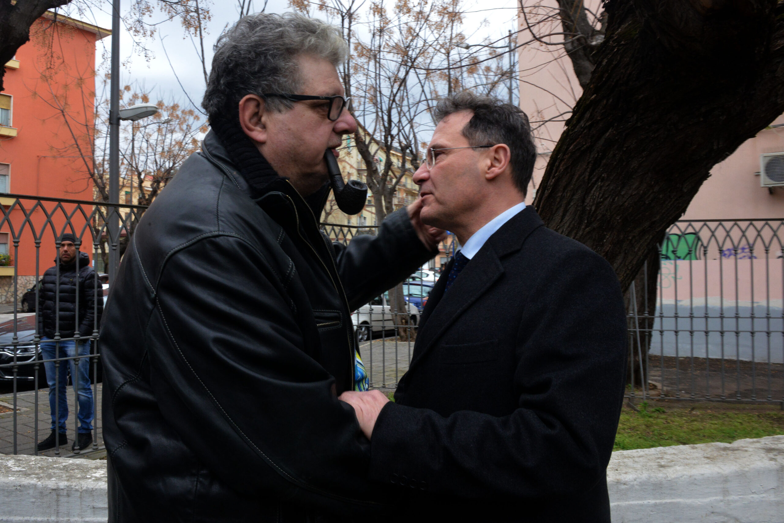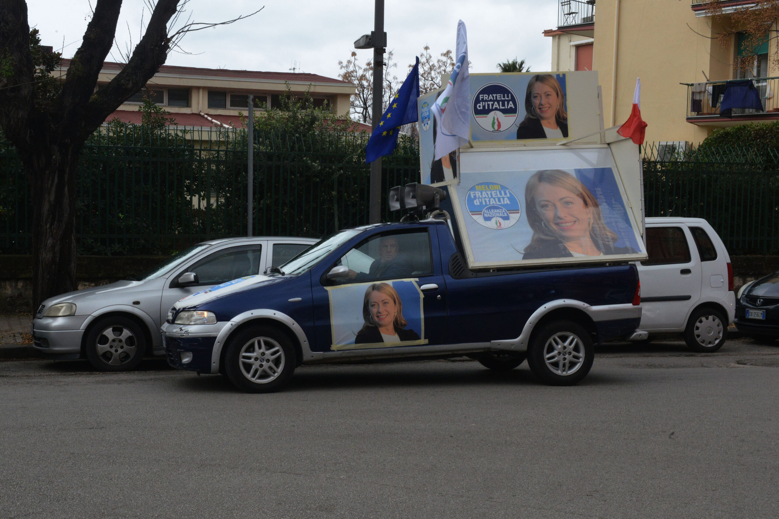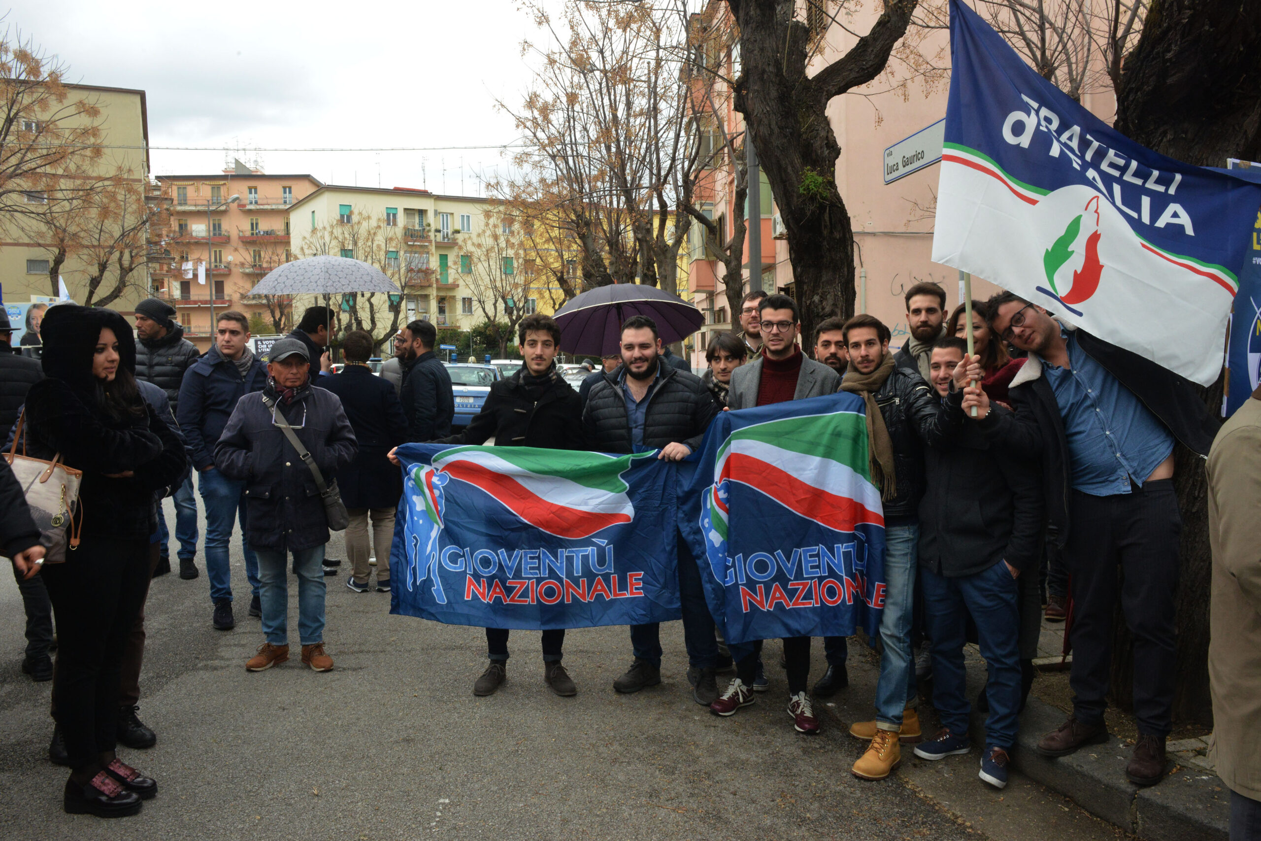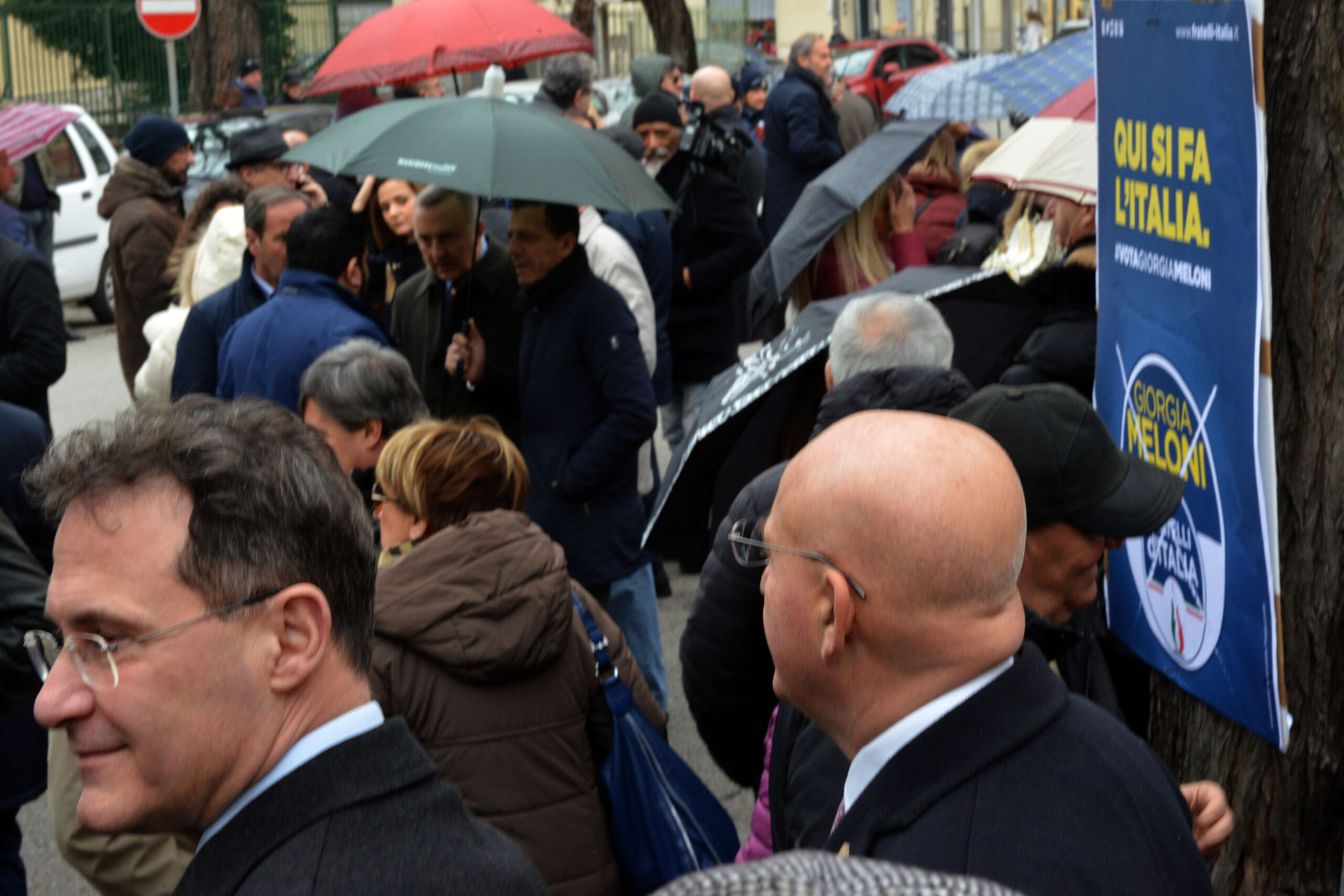 È uno dei luoghi simbolo della stagione di piombo che non risparmiò nemmeno Salerno. Le Br trucidarono uomini dello Stato nel cuore di Torrione, oggi quell’agguato ricordato con un muro di pianto Giorgia Meloni lo ha scelto per rafforzare quel legame tra Fratelli d’Italia e le Forze dell’Ordine. Il cielo, con la sua pioggia a sprazzi, ha ricordato quelle lacrime che nemmeno il sole di agosto asciugò quel drammatico pomeriggio del 1982. L’appuntamento è per le 11 ma l’arrivo della Meloni slitta un po’, l’attesa è scandita dalle note di fratelli d’Italia, l’inno di Mameli che “alla vecchia maniera” l’auto di Emiliano, by Giffoni, ha diffuso per tutto il tempo. “Mi manca Sole che sorgi” (Inno a Roma n.d.r.), peccato. Era la “sigla” di Giorgio Almirante e dei suoi storici comizi a piazza della Concordia. Lì c’era folla oceanica, qui nemmeno i centri sociali si sono fatti vedere, per la tranquillità dei due vigili urbani alle prese con la rimozione delle auto e di un paio di poliziotti. I nostalgici missini ci sono e si vedono, alla vecchia destra salernitana orfana del suo glorioso passato, non par vero ritrovarsi sotto la Fiamma. L’arrivo della Meloni sollecita anche un po’ i residenti della zona, una signora anziana si affaccia dal balcone e manda un saluto alla leader di Fdi, la manifestazione si svolge in piena tranquillità, con rispetto, come merita questo angolo della città. Non sempre rispettato se nella canonica ricorrenza del 26 ago- sto. Il segno di una memoria che non esiste quasi più.