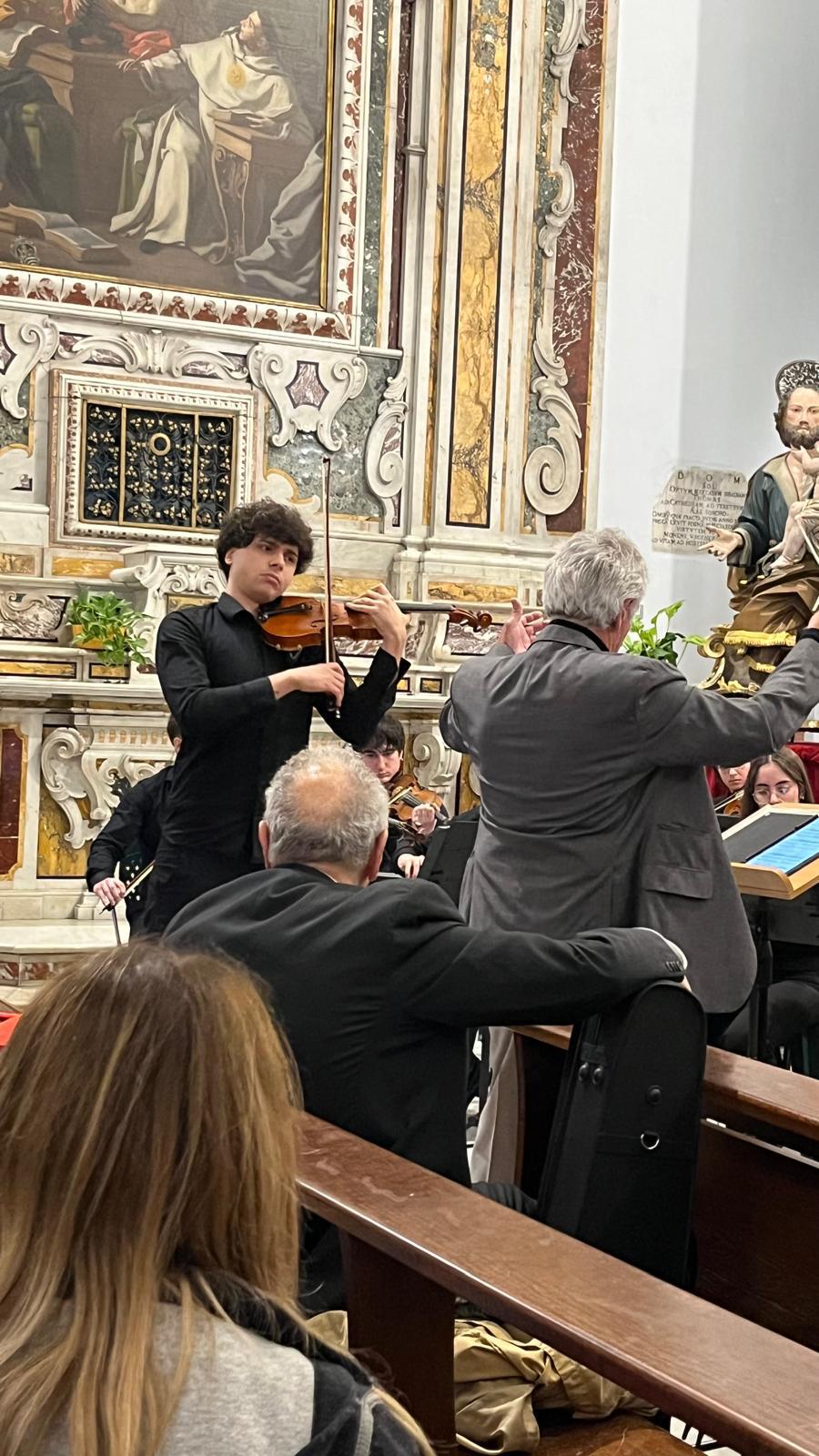 Maestro con allievi in San Domenico per il secondo appuntamento per la rassegna Le primule musicali promossa dalla Associazione Culturale AthenaMuse, in collaborazione con la Scuola Italiana d’Archi e la sua orchestra, sotto la direzione dei maestri Joao Carlos Parreira Chueire e Stefano Pagliani hanno conquistato pubblico e critica eseguendo Chausson, Wieniawski, Paganini e De Sarasate