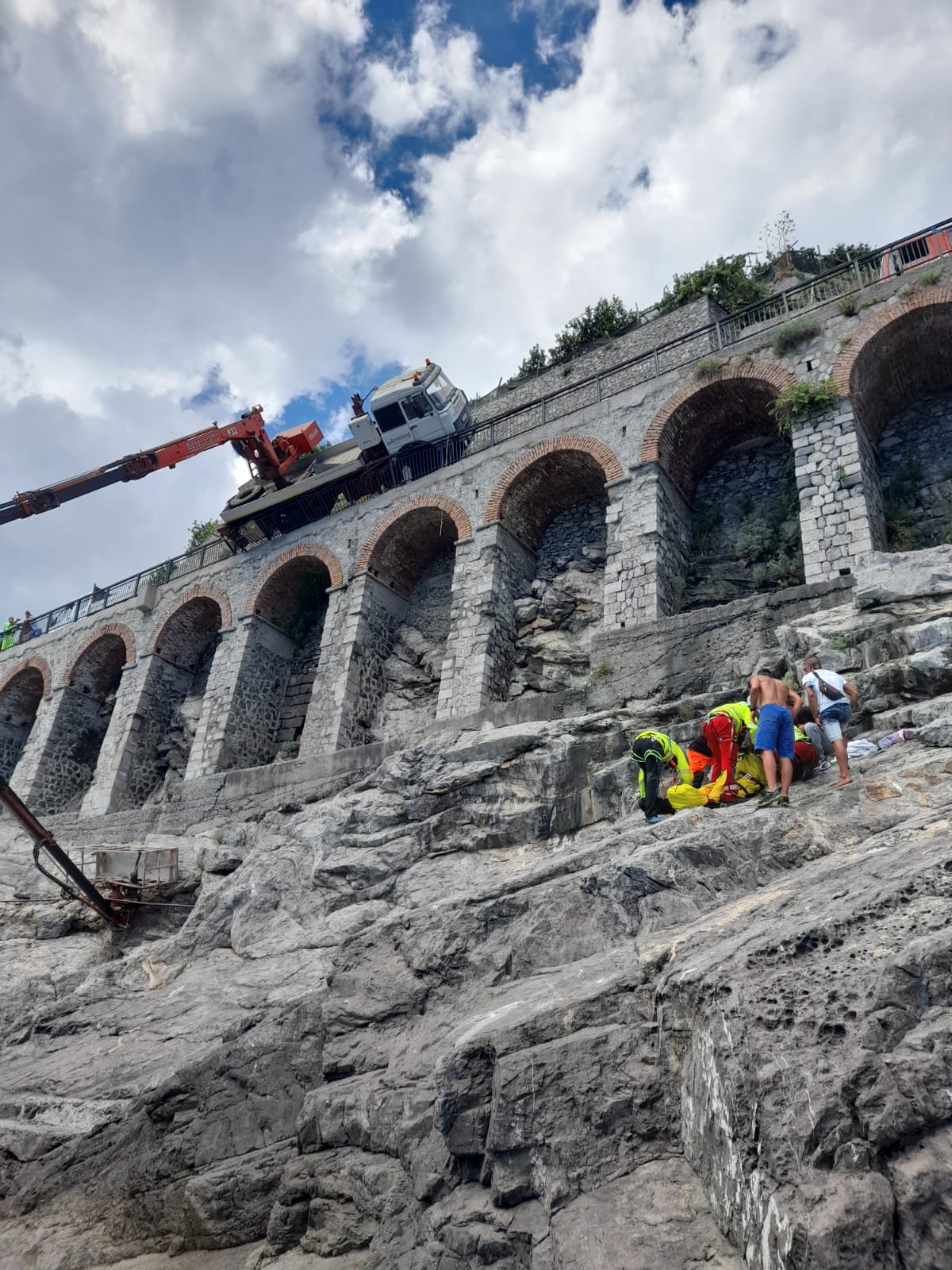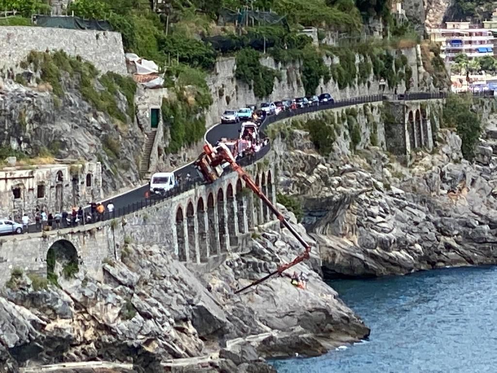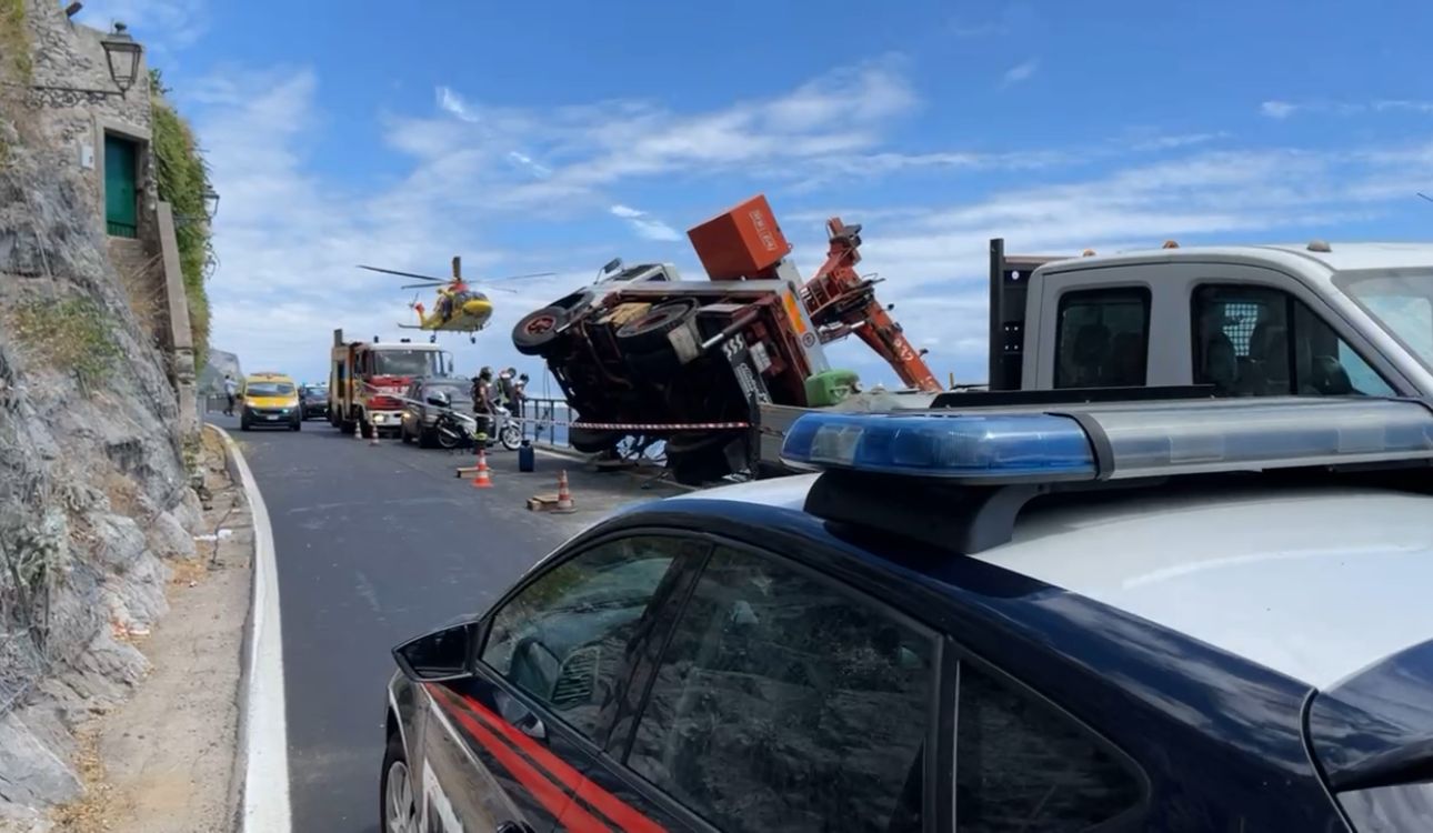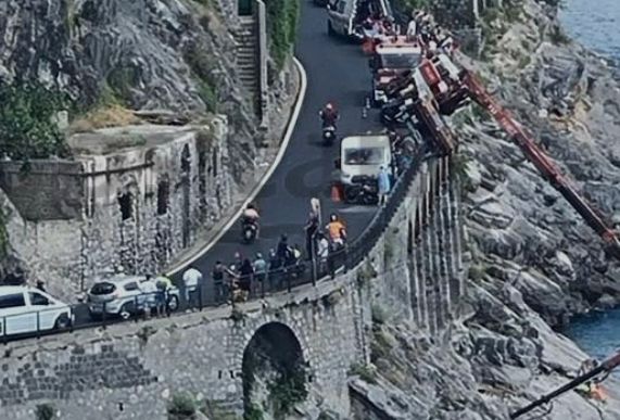 Ancora un incidente sul lavoro. Questa mattina, in via Torricella, fra Minori e Maiori, un operaio dell’Anas è finito sugli scogli, dopo un volo dal cestello della gru. Sul posto intervenuti elicotteri e carabinieri di Amalfi . Il camion ha perso il controllo e gli operai sono sbalzati sulle rocce. Sarebbero due i feriti nell’incidente sul lavoro a Minori. Molto complicato per i soccorritori trasferirlo in ambulanza l’operaio che era nel cestello, che e’ rimasto riverso a terra sulla scogliera e per il quale era stato richiesto l’intervento di un elicottero per il soccorso dall’alto mediante verricello. Un ferito e’ stato trasferito all’ospedale Castiglione di Ravello, l’altro al San Giovanni e Ruggi di Dio di Salerno. Stando alle prime valutazioni degli investigatori, la gru, che e’ di una ditta di ponteggi siciliana, non sarebbe stato ben ancorato all’asfalto. L’operaio ricoverato al Castiglione di Ravello ha solo qualche contusione ed e’ sotto choc ma ha riferito alcuni elementi utili agli investigatori per chiarire la dinamica. L’altro operaio, di circa 40 anni, alle 15.10 e’ stato imbracato e portato a bordo dell’elicottero da personale specializzato mediante verricello, per essere trasferito al Ruggi d’Aragona di Salerno. Ha un politrauma e le sue condizioni sono giudicate gravi. Si e’ reso necessario chiudere temporaneamente al traffico la statale al chilometro 34,200 per consentire le delicate operazioni di rimozione del mezzo che e’ rimasto in equilibrio precario. La raccomandazione e’ di non convergere verso la zona interessata al fine di non intralciare l’intervento che resta delicato.