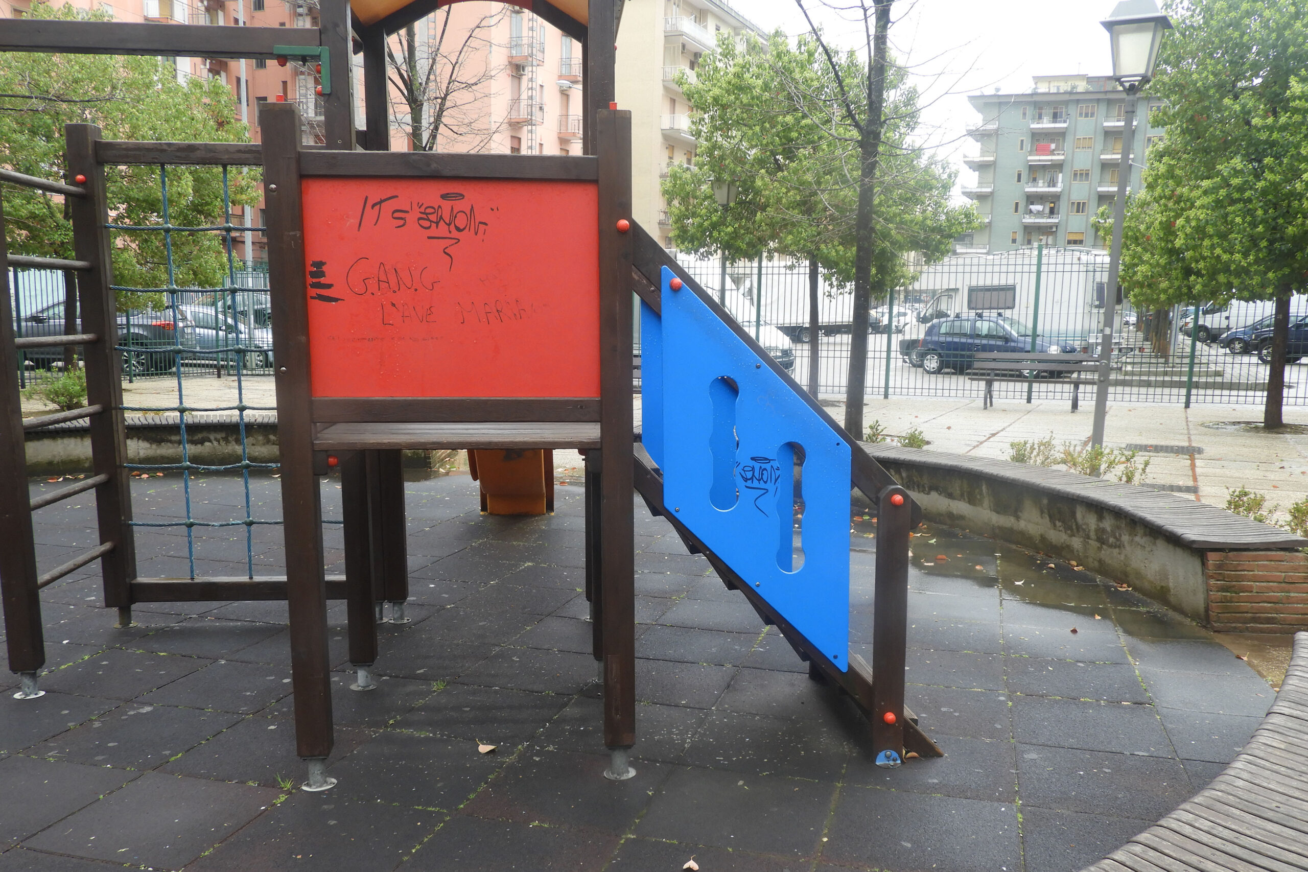 La gang dell’Ave Maria. Sembra essere questo lo pseudonimo utilizzato da una banda di ragazzini che, già da diverso tempo, sta distruggendo piazze e parchi pubblici in città.In particolare, la zona più colpita sembra essere quella di Torrione. Il parco giochi di via Galloppo, infatti, è stato preso di mira da questa banda di incivili: come si nota dalle foto scattate da Guglielmo Gambardella, le giostrine per bambini infatti sono state distrutte, rendendole inutilizzabili oltre che pericolose non solo per i più piccoli, mettendo a repentaglio la sicurezza dei cittadini che abitualmente frequentano il parco per passare del tempo in compagnia dei loro figli. Le altre giostre, invece, sono state imbrattate con scritte poco chiare e l’immancabile firma che li contraddistingue, rendendo ormai “noto” il gruppo. Situazione identica anche ai giardini pubblici di Torrione, già in passato preso di mira da stranieri provenienti dall’est Europa che utilizzavano la fontana lì presente per radersi. Al momento, non si ha alcuna certezza sugli autori di questi gesti incivili ma visto il metodo utilizzato nell’imbrattare pare possa trattarsi dell’ormai nota gang dell’Ave Maria. Da tempo, ormai. i residenti di Torrione chiedono più controlli e l’istallazione di video telecamere di sicurezza per fermare questi scempi e individuarne gli autori. Salerno ormai sembra vivere nel degrado assoluto, in special modo tra la zona Orientale e i rioni collinari. Ciò che manca, nei cittadini, sembra essere il rispetto verso la cosa pubblica, verso luoghi e oggetti che non sono privati ma alla mercé di tutti e in quanto tale, basterebbe quantomeno evitare di distruggerli. Ma, trattandosi della gang dell’Ave Maria le probabilità che si tratti solo di una “ragazzata” sono molto alte: non è tanto la volontà di distruggere le giostre quanto l’immaturità di comprendere che si tratta, per l’appunto, di un bene appartenente ai salernitani.