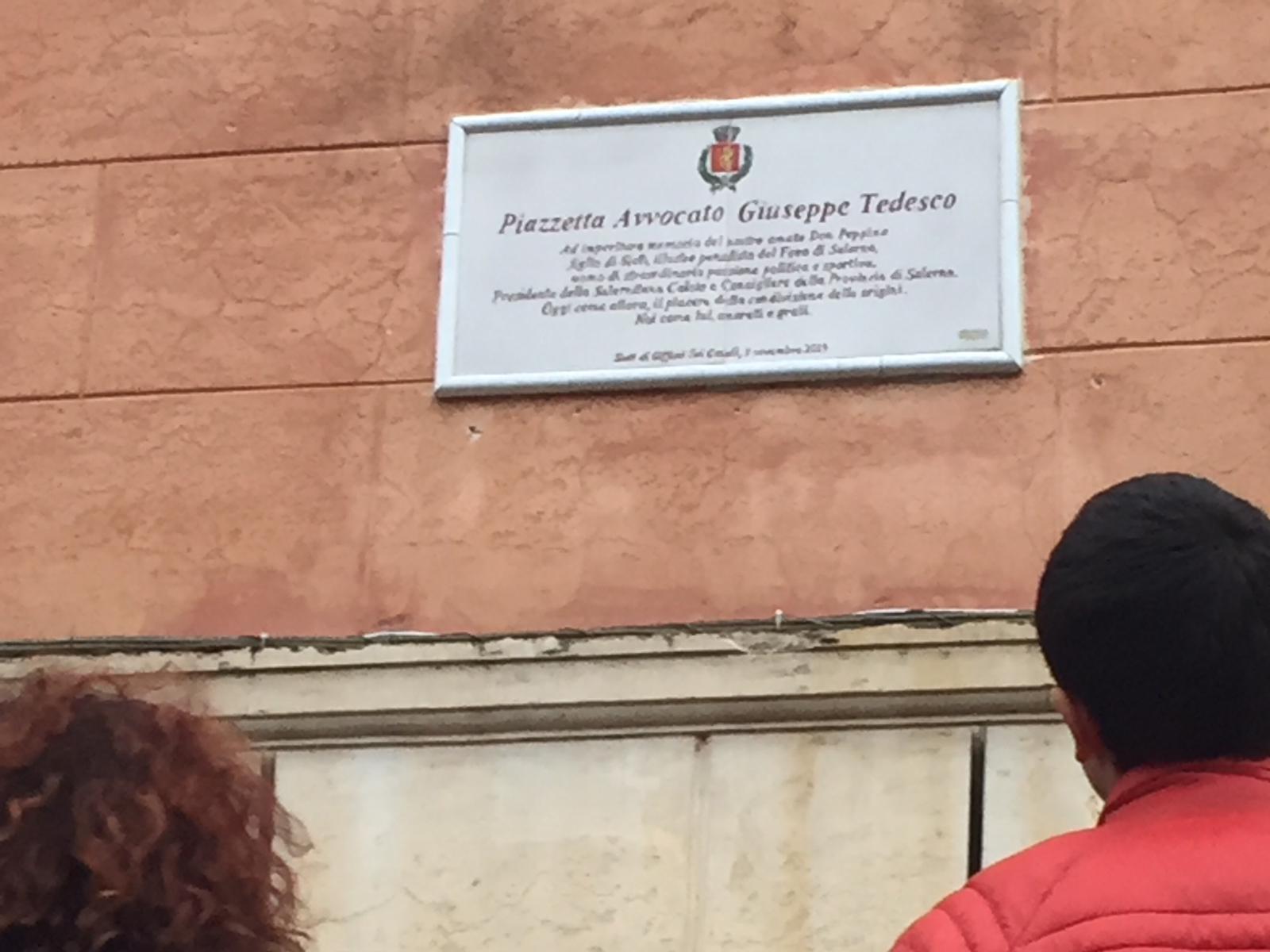Poliedrico, versatile, vulcanico ma anche orgoglioso, tenace e passionale. Lunga ed appropriata la lista di aggettivi che hanno accompagnato il ricordo di Giuseppe Tedesco celebrato, a dieci anni dalla sua scomparsa, nella piccola ed accogliente Sieti, il borgo che diede i natali a quello che ancora oggi viene ricordato come uno tra i più apprezzati e stimati penalisti della storia forense salernitana. Indissolubile, inossidabile, il legame che ha sempre tenuto unito il “ceppo” Tedesco e la comunità di Sieti che, a sua volta, ha voluto ricordare “ ad imperitura memoria” i natali di Don Peppino con una targa affissa nella piccola piazzetta prospiciente la chiesa di Maria SS delle Grazie, dove il giovanissimo Giuseppe, raccontano gli amici di sempre, immaginava di replicare le gesta di Picchi o, meglio ancora, di Piccinini, storico difensore della Salernitana, il grande amore della sua vita, famiglia a parte….. sul punto non mancherebbero delle sacrosante obiezioni! Sieti, la Salernitana, l’avvocatura: per don Peppino Tedesco, come ricordato dal figlio Michele, dal Presidente dell’ordine degli avvocati Silverio Sica e da quanti hanno avuto il piacere e il privilegio di conoscerlo e frequentarlo, erano le stelle polari delle sue giornate, del suo modus vivendi, il modo più semplice e genuino per entrare in sintonia con le persone, per connettersi (senza utilizzare le “diavolerie tecnologiche”) con il mondo che lo circondava. “Il suo sorriso, l’ironia diretta, il valore per la passione d’intenti e l’umanità della difesa: erano queste le caratteristiche che più colpivano dell’avvocato Tedesco – sottolinea Silverio Sica – qualità dell’uomo prima ancora che del grande uomo di legge. Qualità che oggi raccoglie in toto, con volto e modalità contemporanee e al passo con i tempi, il figlio Michele”. Il cielo grigio e la pioggia battente sono stati gli unici “intrusi” in una giornata dedicata al ricordo e alla gioia di vivere; la piccola ed accogliente chiesa di Sieti il luogo in cui si sono dati appuntamento quanti hanno apprezzato e voluto bene all’avvocato Peppino Tedesco, l’omelia di don Luca Basso un punto esclamativo, gli interventi conditi da aneddoti e sana ironia il modo migliore per ricordare un uomo schietto e genuino che non ebbe timore, ma solo tanto coraggio, nel prendere in mano, sul tramonto degli anni ’70, anche le redini della Salernitana iniettando nel club passione e umanità, tratti distintivi del suo modo di essere e delle sue appassionate arringhe. E siccome l’amore per la maglia la si tramanda di padre in figlio, di generazione in generazione, è stato apprezzato anche il gesto della solitamente algida Salernitana di Lotito che attraverso le mani del dirigente Angelo Mariano Fabiani ha donato al nipote Giuseppe, figlio di Michele, la maglia del Centenario. Un gesto spontaneo, non annunciato e per questo più gradito ed apprezzato! Ma don Peppino Tedesco era sì passione per l’avvocatura, amore per la maglia granata ma anche perfetto commensale, conviviale allegro e istrionico. Il figlio Michele ne ha raccolto anche in questo la pesante eredità non trascurando il piacere della tavola un momento dopo la scopertura della lapide sulla quale era ben in vista la chiosa finale “…..oggi come allora il piacere della condivisione delle origini. Noi come lui, onorati e grati”. Scontata e necessaria, allora, anche la chiusura della giornata “celebrata” all’interno dei locali dell’ex Ospedale di Sieti (!) dove in un’atmosfera calda e familiare non è parso strano, o meglio ancora fuori luogo, vedere il professor Gino Kalb servire ai tavoli pizze calde o lo stesso Michele Tedesco mescere buon vino della casa o ancora l’imprenditore Beniamino Brancaccio dispensare porchetta di Ariccia… Nessuna meraviglia o stupore, semplicemente lo spirito, l’umanità, la gioia di vivere: virus assolutamente contagiosi, trasferiti in dosi massicce da don Peppino Tedesco, ed ancora oggi capaci di attecchire senza fare danni perché, come sottolineato dal figlio Michele “Muoiono soltanto le persone di cui non si conserva il ricordo….papà non è morto”.