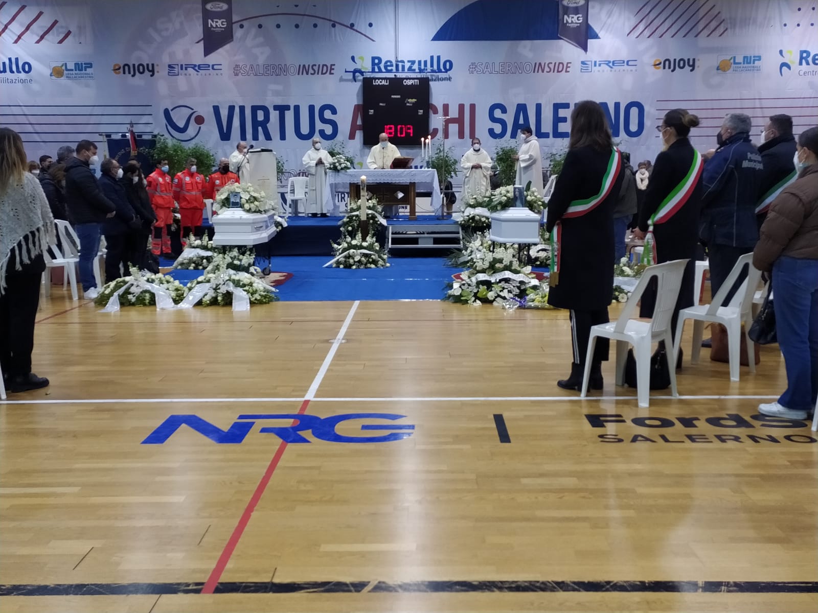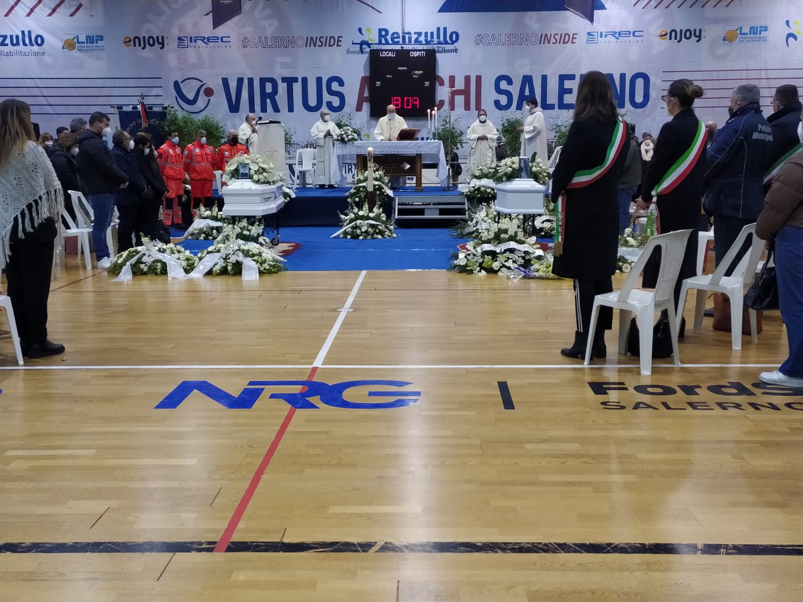 Le sirene delle ambulanze, un lungo applauso e l’abbraccio degli amici. Centinaia di persone presenti, ieri sera, ai funerali di Nicholas Galluzzi e Ilaria Bove, il 18enne e la 15enne che hanno perso la vita il 1 gennaio, a bordo di un Beverly 250. Per l’ultimo saluto, il sindaco Francesco Morra ha chiesto ai familiari di celebrare i funerali al Palazzetto dello Sport di Capriglia, per permettere ad amici e parenti di essere presenti, nel rispetto delle norme anti covid. I feretri sono giunti dinanzi al Palazzetto accolti dalle sirene delle ambulanze e da un lungo applauso. A portare la bara della giovanissima Alessia il fratello, con la divisa della protezione civile. Straziante il dolore dei genitori e degli amici, ancora increduli di fronte ad una tragedia che oggi non ha una spiegazione. “E’ una tragedia inspiegabile”, ha infatti dichiarato don Biagio Napoletano. “Resta lo sconcerto di fronte ad una tragedia che non sappiamo spiegarci, lascerà ferite profonde e costituisce una dura prova anche per la nostra fede – ha aggiunto don Biagio – Giunga per tutti la luce splendente e la speranza della resurrezione”. Presente il sindaco di Pellezzano Francesco Morra mentre il Comune di Salerno non aveva una sua rappresentanza istituzionale. Commovente il ricordo delle amiche che, con Ilaria, condividevano la passione per la ginnastica ritmica: “non riesco a crederci che tu non sei più con noi, che non ci sarà più un allenamento insieme”, ha ricordato una delle giovani atlete che ha descritto la 15enne come una ragazza che stava conquistando, con difficoltà, fiducia in sé stessa, sempre con il sorriso sulle labbra. “Da quando sei arrivata non hai saltato un solo allenamento, non hai mai creato problemi, sempre pronta ad impegnarti. Dopo tanti tentativi sei riuscita a fare tutto, ti sei fidata di me e io di te. E io non posso crederci che tutto questo non ci sarà più. Balla tra gli angeli, ora, vola alto”, ha raccontato visibilmente scossa un’altra giovane atleta. “Non mi do pace, non ci credo che tu non sia più qui con me, non potrò mai più correggerti, abbracciarti e non ci credo che non potremo mai più cercarci con lo sguardo, prima di iniziare un esercizio. Non ci credo”, ha aggiunto. Ilaria e Nicholas, così giovani, innamorati, avevano tutta la vita davanti ma il destino con loro è stato beffardo. L’incidente è avvenuto nella frazione di Coperchia, in via De Iulis, la dinamica è ancora in fase di accertamento. Galluzzi, che viveva a Pellezzano, avrebbe perso il controllo del Beverly 250 e sarebbe finito rovinosamente al suolo. La civica amministrazione di Salerno e di Pellezzano hanno espresso parole di cordoglio. Il sindaco Francesco Morra ieri ha proclamato il lutto cittadino.