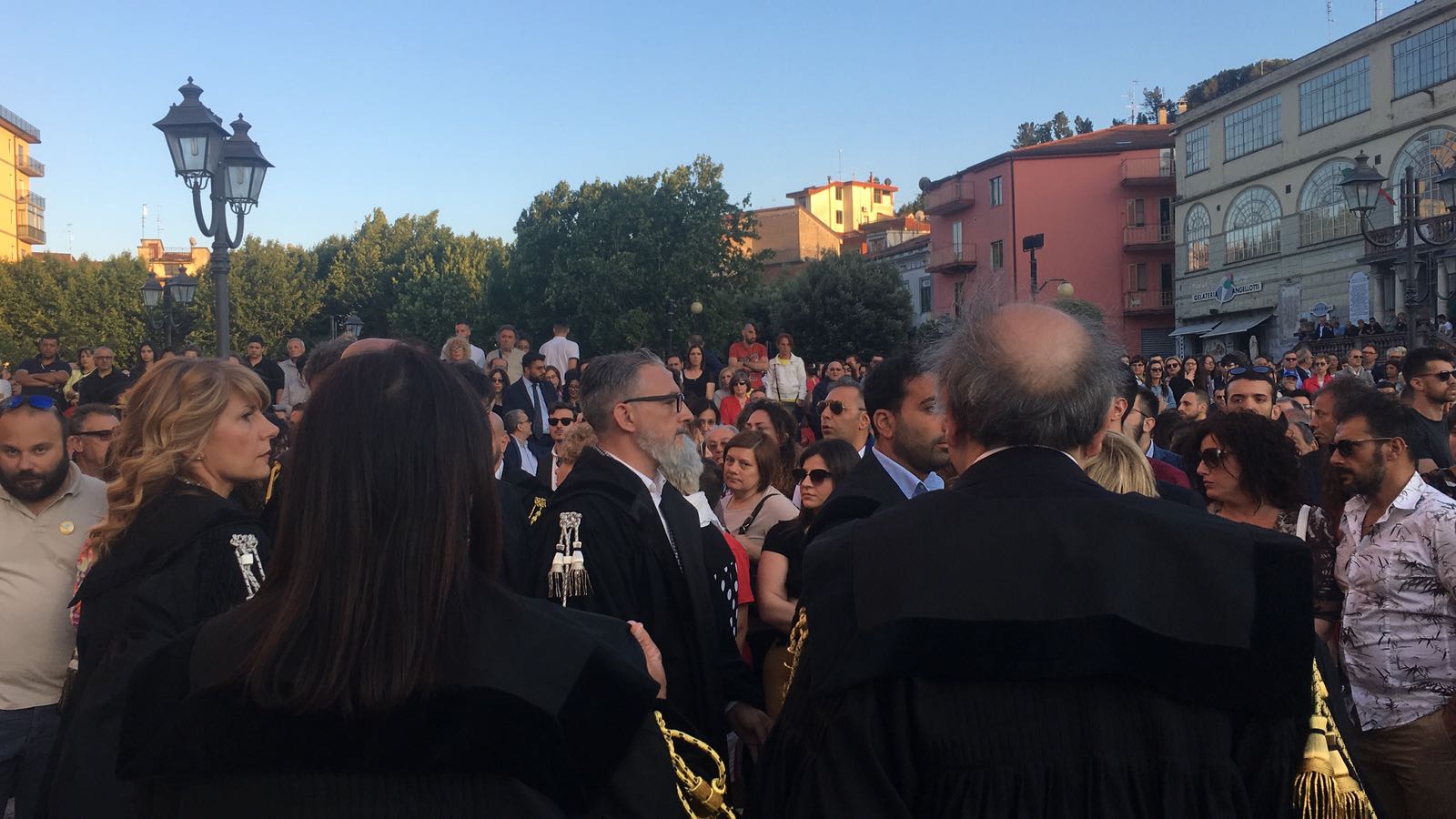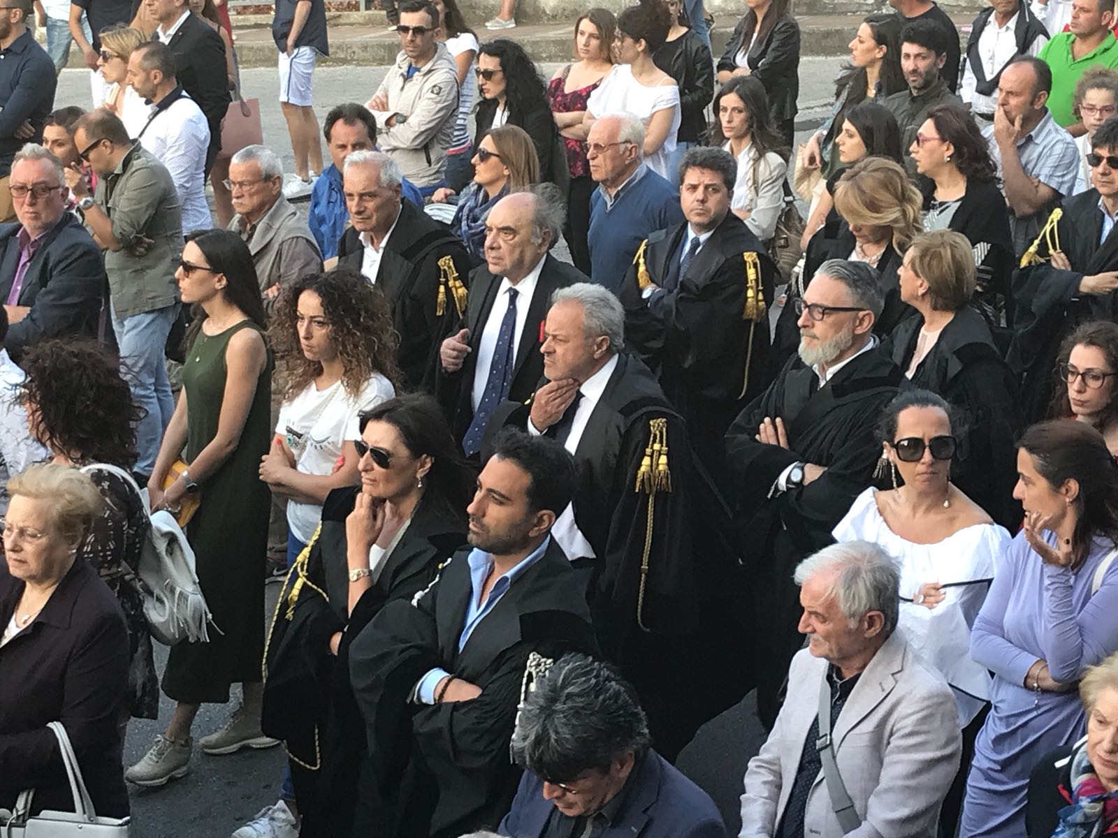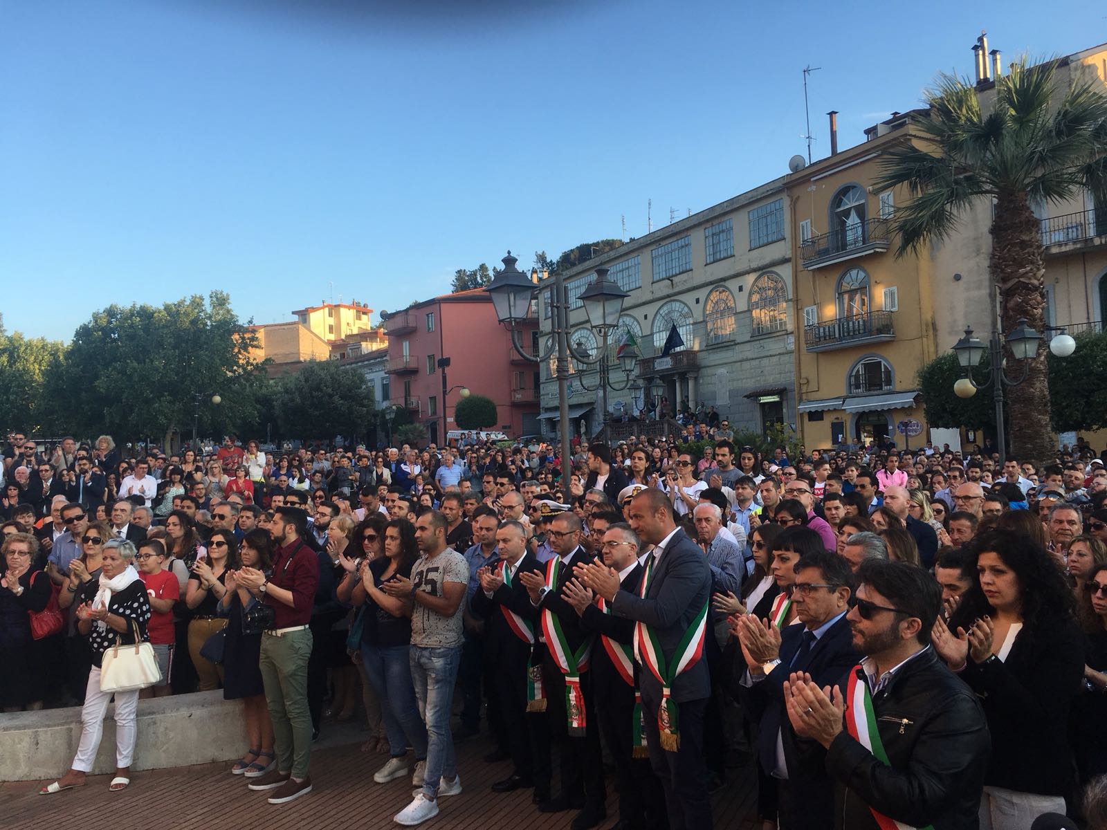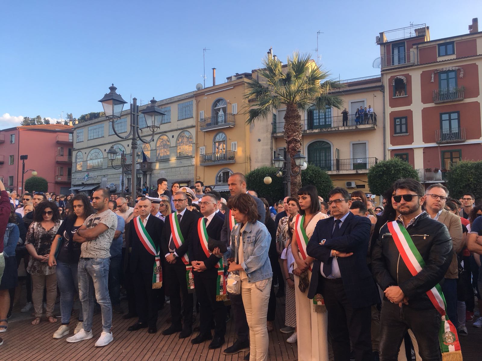 Un silenzio spettrale ha accompagnato le centinaia di persone che ieri hanno preso parte al corteo silenzioso contro l’inaudita violenza e ingiustizia subita dal giovane Giampiero Delli Bovi. Il corteo, organizzato dal Forum dei Giovani di Montecorvino Rovella, di cui Giampiero è presidente, ha visto la partecipazione di tantissimi montecorvinesi ma non solo. Presenti anche tantissimi colleghi del giovane avvocato, rappresentanti l’Ordine degli avvocati di Salerno e i vari Forum Provinciali dei Giovani. Le strade del paese gremite, per esprimere tutta la rabbia e l’indignazione di questi giorni. Quel pacco bomba infatti non ha soltanto devastato la vita di Giampiero, ma ha anche scosso l’intero paesino, sprigionando paure e timori. Tantissimi i giovani presenti, persone che conoscono Delli Bovi e non possono che elogiarlo per la sua gentilezza e disponibilità. “Ogni qualvolta lo incrociavo per strada e gli parlavo ero estasiata dal suo sorriso. Sorrideva con gli occhi, la sua bontà traspariva in ogni dove. Spero che adesso, nonostante tutto, riesca a sorridere, ancora”, afferma una ragazza singhiozzando. Tutti sono composti, ci si guarda intorno, la speranza si tocca con mano, è nell’aria prepotentemente. Giampiero ce la farà, non è solo. A squarciare il silenzio sono le parole commosse pronunciate da Padre Gianfranco: “Dico sempre anche in chiesa che la peggior bestemmia è il silenzio, oggi però questo silenzio è il silenzio di un cuore che batte all’unisono. La tentazione era quella di chiuderci invece siamo scesi per strada coraggiosi. E tutti voi siete bellissimi. Tutto questo è per Giampiero, Giampiero che ha bisogno di voi e che chiede di voi, di quello che il suo paese pensa. Oggi stiamo rompendo il terrore. Questo lungo applauso è per lui, preghiamo per Giampiero”. Il corteo è stato dunque un cammino spavaldo per dire no alla violenza, e farlo in silenzio con compostezza ed umiltà. Montecorvino per Giampiero, per spronarlo a lottare questa grande battaglia che dovrà affrontare. Montecorvino insieme a Giampiero per sconfiggere ogni sopruso e cattiveria, per un giovane ragazzo innocente che ha ancora tanti sogni da dover realizzare. A pochi minuti dall’inizio della marcia silenziosa, due giovani, in prossimità del convento, stanno parlando delle condizioni di Giampiero, ricoverato nel plesso di via San Leonardo del Ruggi D’Aragona. “Ora bisogna solo fare silenzio” è la risposta ferma di uno dei due giovani alla richiesta di un pensiero per Giampiero. Risposta quasi simile: “Magari dopo, ora no”, da parte di uno dei due ragazzi del Forum appoggiati alla ringhiera sul lato esterno di via Cavour. Tra i primi ad arrivare, a piedi, il sindaco di Giffoni Sei Casali, insieme all’ex sindaco Gerardo Marotta. Il neo sindaco di Montecorvino Rovella Martino D’Onofrio dialoga con due uomini dell’arma dei carabinieri. A piedi arriva anche il sindaco di Giffoni Valle Piana Antonio Giuliano, che si unisce al gruppo di altri primi cittadini dei Picentini, a cui si aggiungono il sindaco di Olevano sul Tusciano e di Bellizzi. Alle 19:20, con qualche minuto di ritardo, ha inizio il corteo, che procede lungo il viale esponendo alla testa uno striscione blu con su scritto #IostoconGiampiero. Il corteo con una foltissima partecipazione attraversa il viale che porta a piazza Belvedere, dove su invito di frate Gianfranco si osservano tre minuti di silenzio. Piazza Belvedere e l’area circostante è occupata da un’enorme follaDopo le parole di frate Gianfranco lo striscione con su scritto #IostoconGiampiero viene appeso alla ringhiera del primo piano del municipio. Tra le quasi duemila persone presenti, il sindaco di Bellizzi Mimmo Volpe; il presidente del Consiglio dell’ordine degli avvocati, Amerigo Montera con i legali in toga; i consiglieri comunali di Salerno Dante Santoro e Leonardo Gallo ed il neo parlamentare Nicola Acunzo, solo per citarne alcuni.