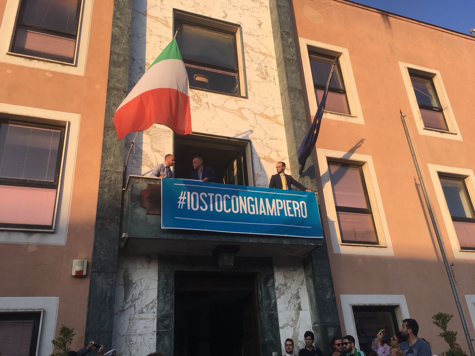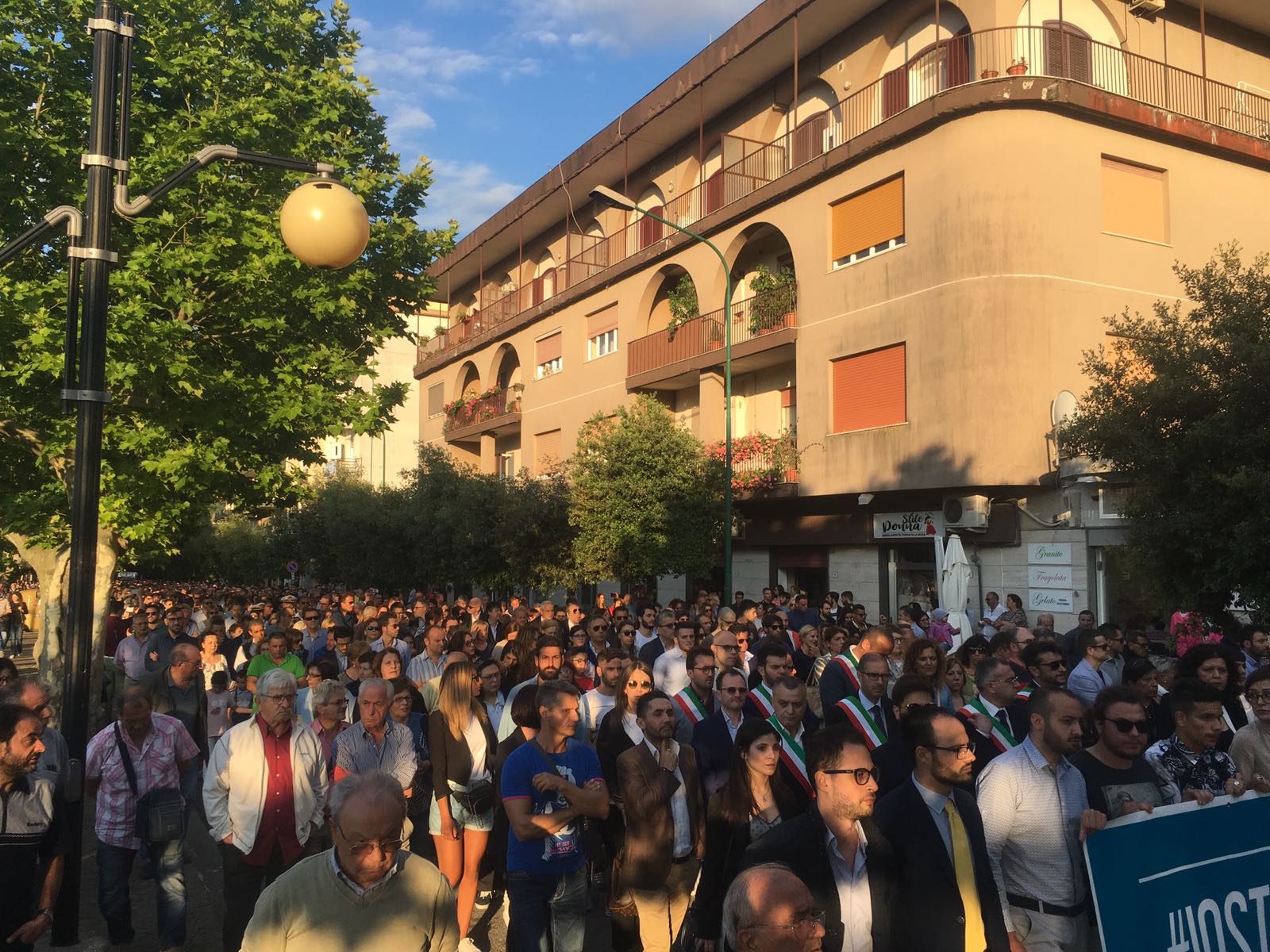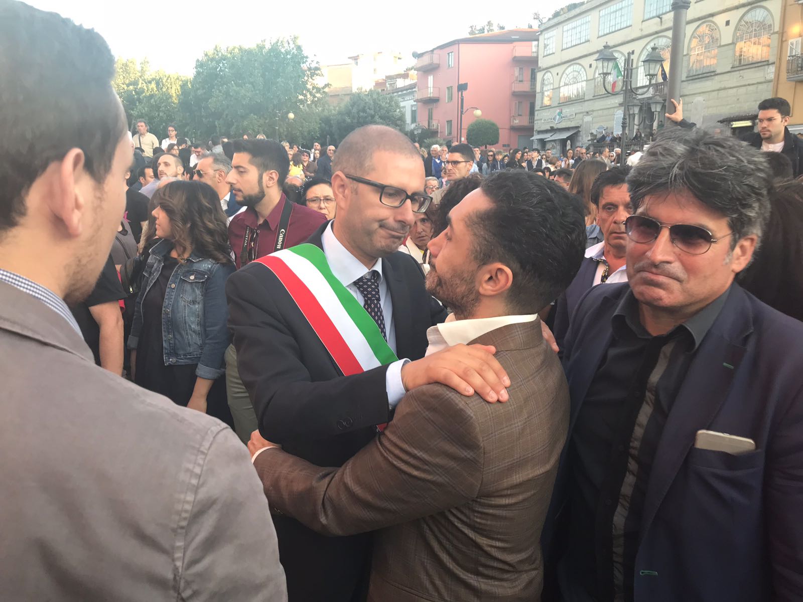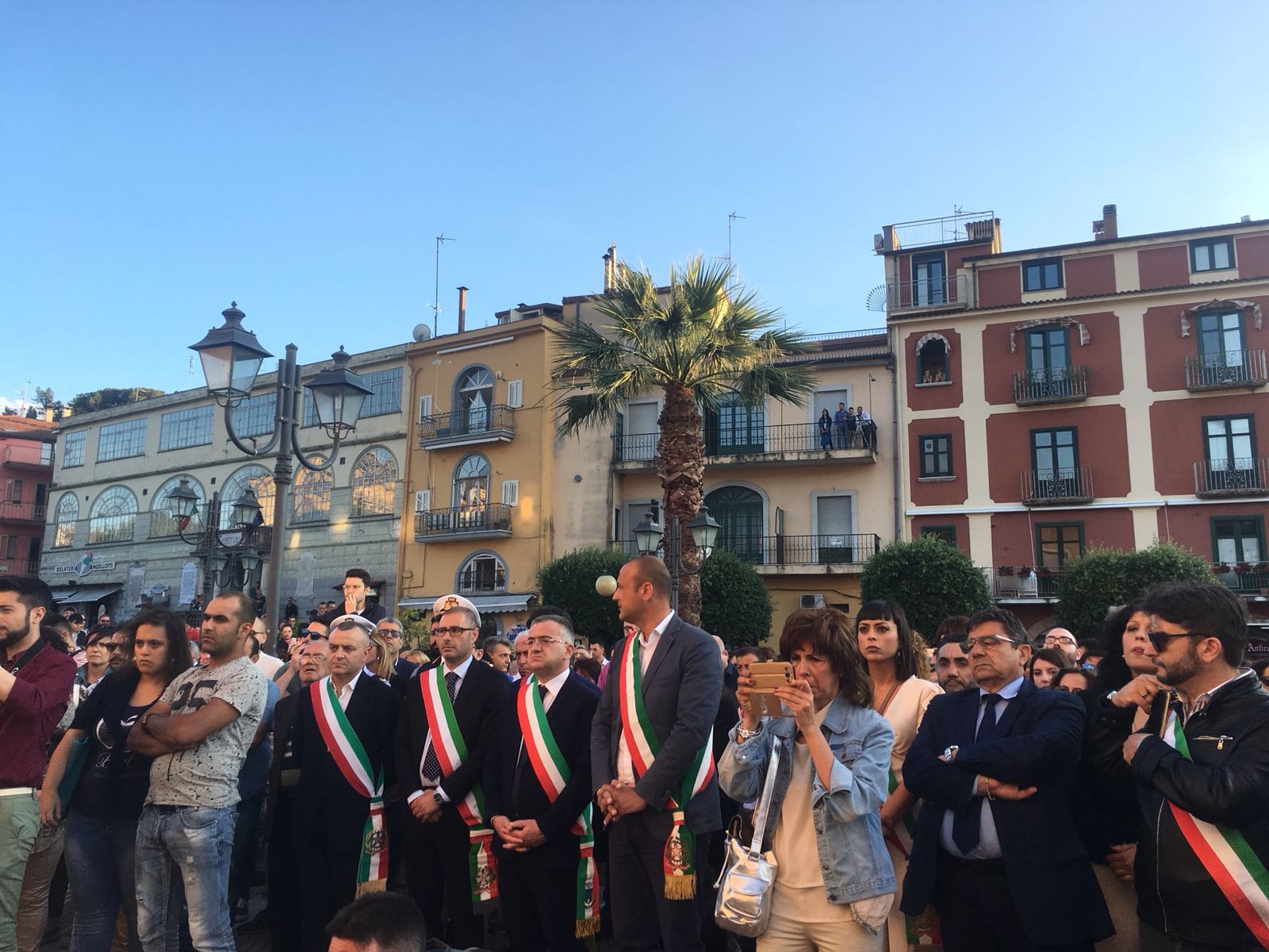 Un silenzio spettrale ha accompagnato le centinaia di persone che ieri hanno preso parte al corteo silenzioso contro l’inaudita violenza e ingiustizia subita dal giovane Giampiero Delli Bovi. Il corteo, organizzato dal Forum dei Giovani di Montecorvino Rovella, di cui Giampiero è presidente, ha visto la partecipazione di tantissimi montecorvinesi ma non solo. Presenti anche tantissimi colleghi del giovane avvocato, rappresentanti l’Ordine degli avvocati di Salerno e i vari Forum Provinciali dei Giovani. Le strade del paese gremite, per esprimere tutta la rabbia e l’indignazione di questi giorni. Quel pacco bomba infatti non ha soltanto devastato la vita di Giampiero, ma ha anche scosso l’intero paesino, sprigionando paure e timori. Tantissimi i giovani presenti, persone che conoscono Delli Bovi e non possono che elogiarlo per la sua gentilezza e disponibilità. “Ogni qualvolta lo incrociavo per strada e gli parlavo ero estasiata dal suo sorriso. Sorrideva con gli occhi, la sua bontà traspariva in ogni dove. Spero che adesso, nonostante tutto, riesca a sorridere, ancora”, afferma una ragazza singhiozzando. Tutti sono composti, ci si guarda intorno, la speranza si tocca con mano, è nell’aria prepotentemente. Giampiero ce la farà, non è solo. A squarciare il silenzio sono le parole commosse pronunciate da Padre Gianfranco: “Dico sempre anche in chiesa che la peggior bestemmia è il silenzio, oggi però questo silenzio è il silenzio di un cuore che batte all’unisono. La tentazione era quella di chiuderci invece siamo scesi per strada coraggiosi. E tutti voi siete bellissimi. Tutto questo è per Giampiero, Giampiero che ha bisogno di voi e che chiede di voi, di quello che il suo paese pensa. Oggi stiamo rompendo il terrore. Questo lungo applauso è per lui, preghiamo per Giampiero”. Il corteo è stato dunque un cammino spavaldo per dire no alla violenza, e farlo in silenzio con compostezza ed umiltà. Montecorvino per Giampiero, per spronarlo a lottare questa grande battaglia che dovrà affrontare. Montecorvino insieme a Giampiero per sconfiggere ogni sopruso e cattiveria, per un giovane ragazzo innocente che ha ancora tanti sogni da dover realizzare. A pochi minuti dall’inizio della marcia silenziosa, due giovani, in prossimità del convento, stanno parlando delle condizioni di Giampiero, ricoverato nel plesso di via San Leonardo del Ruggi D’Aragona. “Ora bisogna solo fare silenzio” è la risposta ferma di uno dei due giovani alla richiesta di un pensiero per Giampiero. Risposta quasi simile: “Magari dopo, ora no”, da parte di uno dei due ragazzi del Forum appoggiati alla ringhiera sul lato esterno di via Cavour. Tra i primi ad arrivare, a piedi, il sindaco di Giffoni Sei Casali, insieme all’ex sindaco Gerardo Marotta. Il neo sindaco di Montecorvino Rovella Martino D’Onofrio dialoga con due uomini dell’arma dei carabinieri. A piedi arriva anche il sindaco di Giffoni Valle Piana Antonio Giuliano, che si unisce al gruppo di altri primi cittadini dei Picentini, a cui si aggiungono il sindaco di Olevano sul Tusciano e di Bellizzi. Alle 19:20, con qualche minuto di ritardo, ha inizio il corteo, che procede lungo il viale esponendo alla testa uno striscione blu con su scritto #IostoconGiampiero. Il corteo con una foltissima partecipazione attraversa il viale che porta a piazza Belvedere, dove su invito di frate Gianfranco si osservano tre minuti di silenzio. Piazza Belvedere e l’area circostante è occupata da un’enorme follaDopo le parole di frate Gianfranco lo striscione con su scritto #IostoconGiampiero viene appeso alla ringhiera del primo piano del municipio. Tra le quasi duemila persone presenti, il sindaco di Bellizzi Mimmo Volpe; il presidente del Consiglio dell’ordine degli avvocati, Amerigo Montera con i legali in toga; i consiglieri comunali di Salerno Dante Santoro e Leonardo Gallo ed il neo parlamentare Nicola Acunzo, solo per citarne alcuni.