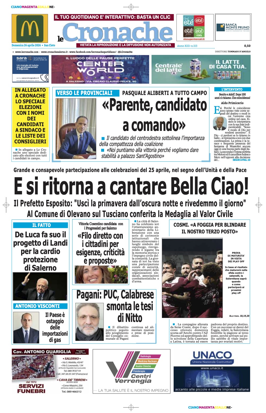 Edizione Le Cronache 26/04/2026 e speciale elezioni