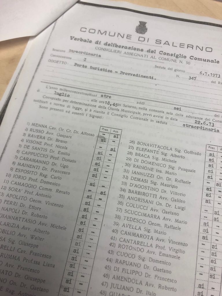 Il 6 luglio 1973 il Consiglio comunale di Salerno si riunisce per il porto turistico. Sindaco Gaspare Russo, consiglieri comunali del calibro di Alfonso Menna, Bruno Ravera, Alberto Clarizia, Walter Mobilio, Gaetano Di Marino, Nino Colucci. Sul tavolo c’è lo sviluppo del porto turistico. Insomma, l’origine di quel fronte mare che non c’è mai più stato. L’intuizione di allora prevedeva l’allargamento del porto turistico, con annessa viabilità e parcheggi. Il risultato di oggi è l’ingresso di Salerno completamente in ostaggio del porto commerciale e del viavai di mezzi pesanti. Forse, quest’ultimo, è uno dei problemi più rilevanti della città di Salerno che si interseca con quello della viabilità in ingresso, ora all’ordine del giorno del dibattito politico. Il 25 giugno 1986 arriva anche la proposta operativa. È firmata dal cavaliere Giuseppe Amato, che annuncia la costituzione della società “New Port Masuccio Salernitano Spa”. Ma da allora ad oggi il porto turistico è un semplice approdo. Così capita – nella Salerno città turistica – che i camion invadano l’ingresso della città e le navi mercantili il mare ai confini con la Costiera Amalfitana e che il porto turistico sia realizzato lungo la costa sud, dove al momento non c’è altro che una via, uno stadio e tanto degrado. Con l’aggiunta che il Marina d’Arechi resta inspiegabilmente un fortino inespugnabile, dove non a tutti è permesso entrare.