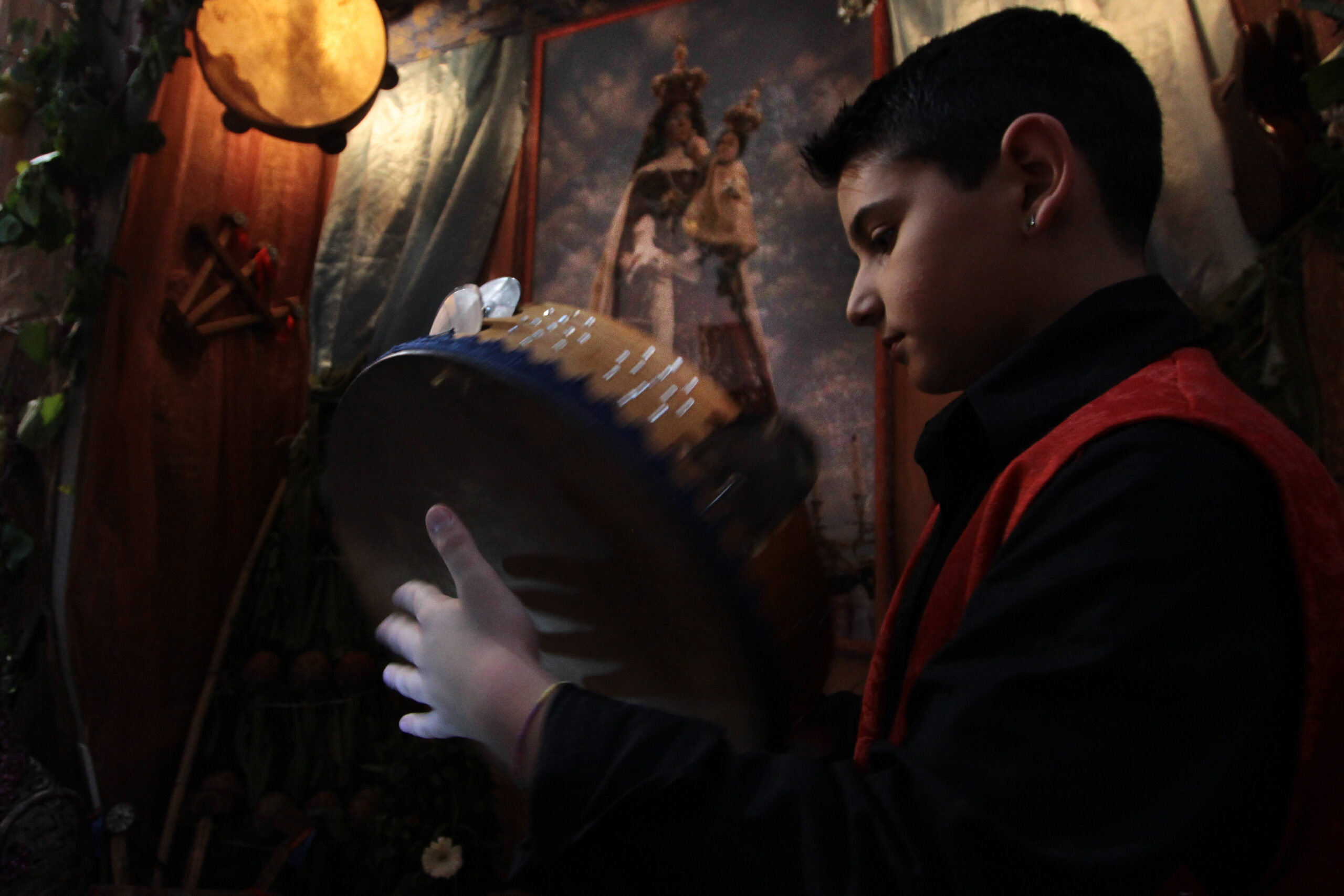 FOTO OVER (in alto) Per la sezione over, la commissione ha scelto l’istantanea del 67enne Pasquale Pannullo di Angri che ha colto la mano di un giovane fedele nell’atto di percuotere la tammorra, quasi a voler rafforzare con il suono di questa, la sua sommessa preghiera alla madre delle madri.