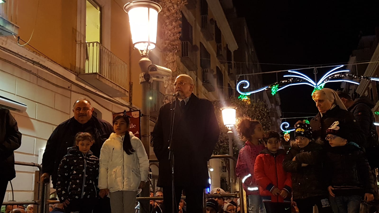 Tutto come previsto: alle 17.30 il maestoso albero di natale in piazza Portanova è stato inaugurato in presenza del sindaco Enzo Napoli e del governatore Vincenzo De Luca. Ospiti d’eccezione i bambini e ragazzi dell’istituto che si occupa dei bambini sordomuti Smaldone.