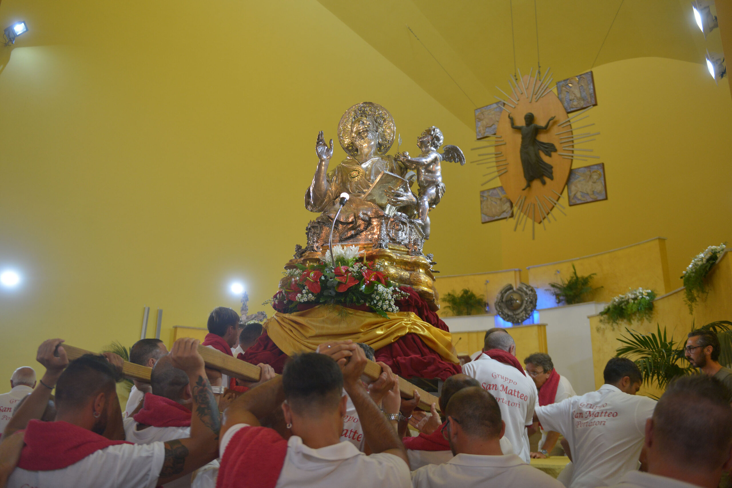 «Abbiamo voluto fortemente che San Matteo partisse da qui, luogo dei martiri salernitani. Il nostro obiettivo è arrivare al cuore della nostra comunità». Centinaia di fedeli ieri pomeriggio hanno riempito i giardini di “Forte La Carnale” per accompagnare idealmente la statua dell’apostolo dentro la chiesa di Santa Maria ad Martyres, dove la riproduzione del santo resterà per tre giorni, prima di spostarsi verso la parrocchia di Gesù redentore nel quartiere Pastena. E’ ufficialmente partita la marcia di avvicinamento verso la festa del santo patrono di Salerno. «Ho voluto fortemente che la statua di San Matteo iniziasse la pelegrinatio cittadina dai giardini de “La Carnale”, luogo in cui vengono venerati la vergine santa ed insieme i tre martiri salernitani, Ante Caio e Fortunato, assassinati ai tempi delle persecuzioni di Diocleziano». Visibilmente soddisfatto della massiccia risposta da parte della cittadinanza alla celebrazione don Michele Pecoraro. Il parroco ha spiegato le motivazioni che ho hanno spinto a voler iniziare il percorso, che quest’anno toccherà interi quartieri della città, proprio nei pressi della foce del fiume Irno: «E’ qui che i nostri martiri vennero decapitati, tra la stazione e la parrocchia di Torrione. All’inizio del 4 secolo questi giovani, pane di casa nostra – come ama definirli il parroco del duomo di Salerno – offrirono la propria vita nella testimonianza più coraggiosa. Preferirono rinunciare alla loro vita nel fiore della giovinezza, per confondersi nell’eterna giovinezza di Cristo». Missione delle celebrazioni di questi giorni la riscoperta della memoria collettiva: «Abbiamo voluto che Matteo abbracciasse i suoi fratelli. Rievocare la memoria storica e religiosa della nostra comunità penso sia un’iniezione profonda di carica, amore, fiducia e forza, perché possiamo vivere oggi la nostra testimonianza, ovvero il nostro martirio, il nostro sì incondizionato a Cristo Gesù, che il vangelo ci annuncia continuamente, attraverso il loro esempio. Non vorrei cadere nella poesia e nel sentimento – prosegue Pecoraro – ma vorrei davvero che il sangue del sacrificio dei nostri martiri sgorgasse nelle vene della chiesa. Vorremmo che questa testimonianza di amore e immenso sacrificio sia da esempio anche per noi che governiamo la sfera spirituale. Troppe volte anche noi ci sentiamo fragili ». Dopo il rito di incensazione che ha inebriato i fedeli, i portatori hanno condotto la statua all’interno della Chiesa di Santa Maria ad Martyres, dove è stata condotta la consueta messa serale. «Non riusciamo ad affrontare l’ateismo pratico di oggi. Ecco perché abbiamo voluto che Matteo visitasse la nostra città tutta perché potessimo noi capire la bellezza del nostro sì incondizionato al vangelo, a quel vangelo scritto con l’inchiostro ed «il sangue» ha asserito il parroco alla fine della celebrazione.