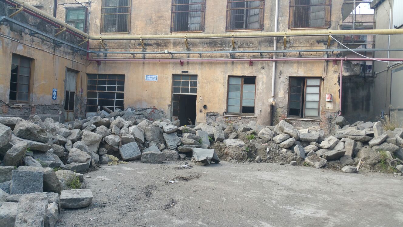 Indecente e desolante è lo spettacolo che ci si ritrova in quella che era una fabbrica simbolo di Scafati. Una struttura abbandonata nel più totale degrado, trasformata in una vera e propria discarica dove è possibile reperire di tutto. Alcuni capannoni all'entrata sono usati come deposito di vecchie autovetture, si può notare un'ambulanza in ottimo stato parcheggiata, vi è anche abbandonato un nuovissimo autobus per il trasporto scolastico, oltre a varie attrezzature per i soccorsi che mai si sono viste in giro per Scafati. Non mancano in giro decine di segnali stradali, pali della pubblica illuminazione, guardrail, semafori che servivano per gli attraversamenti pedonali, il tutto circondato da rifiuti di vario genere. A farla da padrone oltre l'incuria è lo stoccaggio di decine di tonnellate di materiale di risulta proveniente dai lavori stradali, in alcuni angoli vi sono anche decine di metri cubi di pietre per la pavimentazione stradale in basalto e in pietra lavica. Erbacce e locali fatiscenti fanno da cornice a tutto questo scenario di desolazione e degrado. Chissà che con i 400mila e passa euro del fu progetto Urban Center non si sarebbe potuto fare qualcosa per la riqualificazione di una parte della struttura ex-manifattura dei tabacchi.