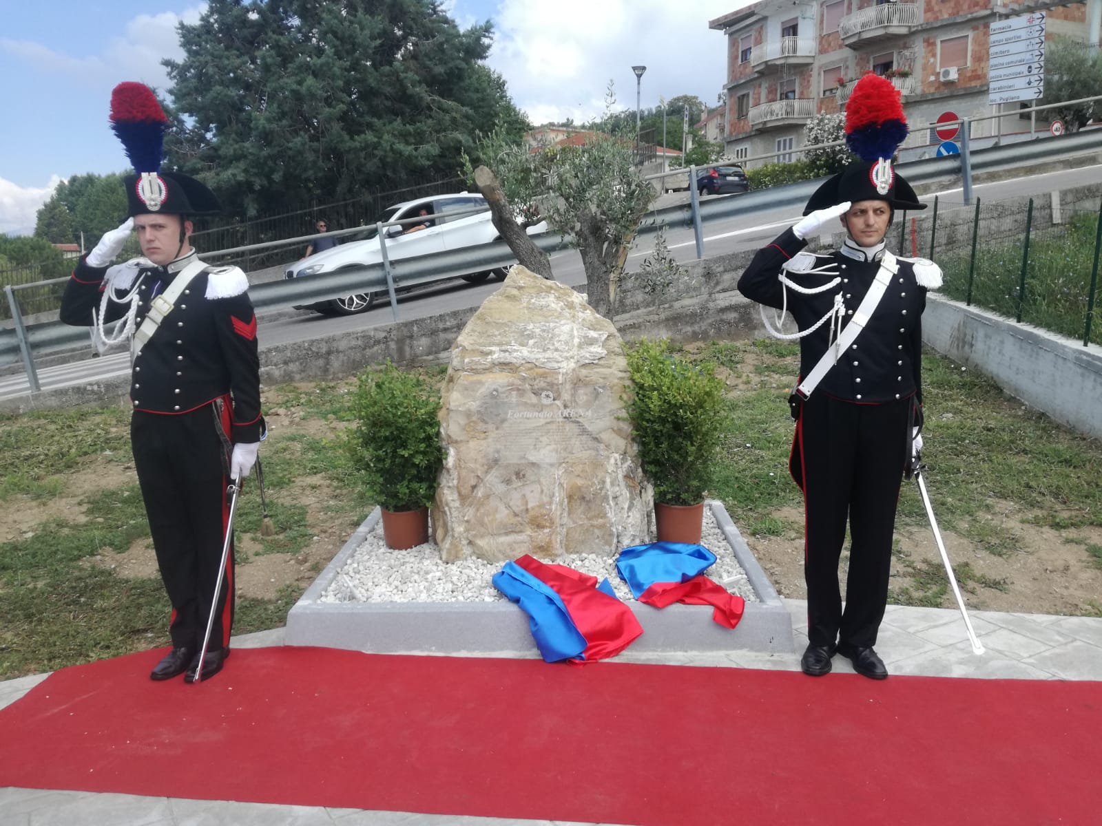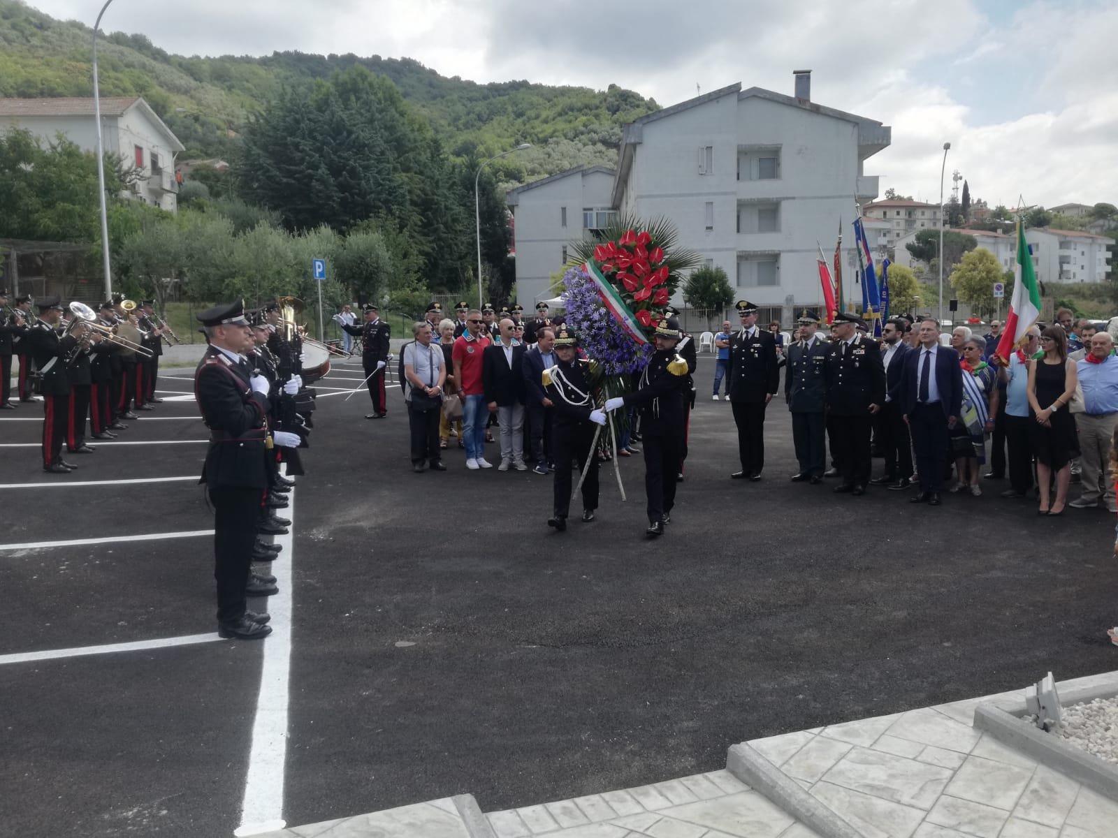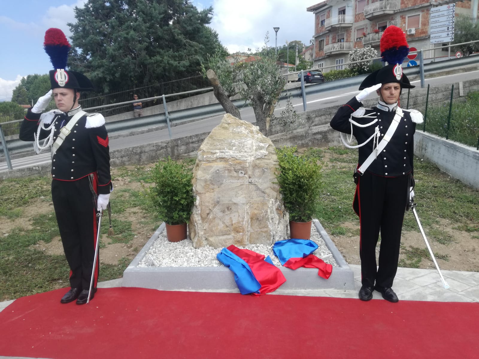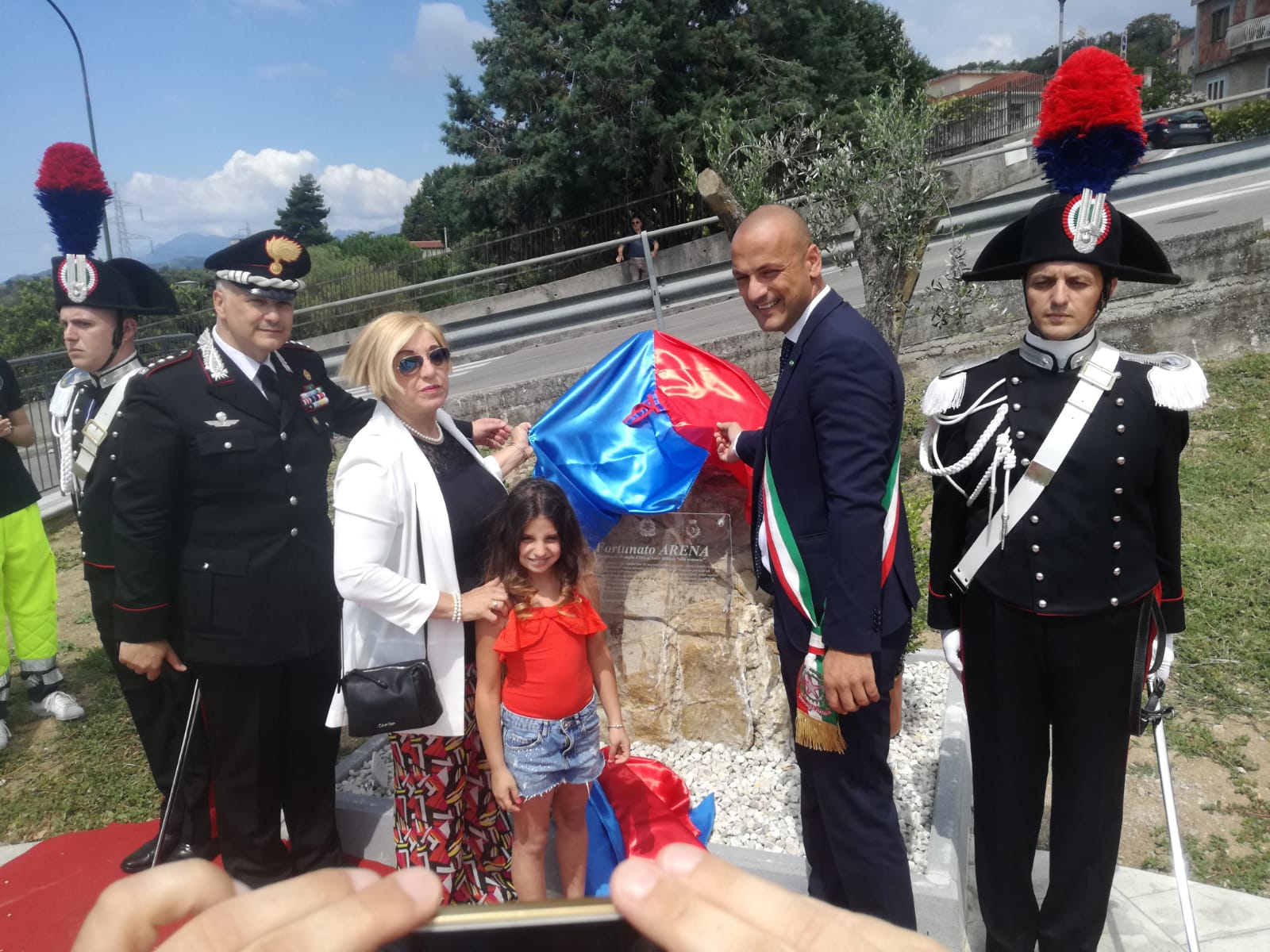 “Con questa nuova opera pubblica, manifestiamo il nostro operato e la nostra operatività nell’inaugurare una nuova piazza intitolata a Fortunato Arena e il monumento in memoria del carabiniere che io ritengo sia un eroe che ha dato la propria vita per il nostro territorio. Nonostante tutto vi ricordo che Fortunato Arena era di un paesino vicino Messina e questo sta a significare ancora forte il senso di appartenenza alla divisa. Noi abbiamo dato il riconoscimento, il giusto valore a questo eroe”. E’ quanto affermato ieri dal sindaco di Montecorvino Pugliano Alessandro Chiola a margine dell’inaugurazione del nuovo piazzale e del monumento intitolati al carabiniere Fortunato Arena, medaglia d’oro al valor militare ucciso nel 1992 da pericolosi criminali. Presenti tra gli altri il deputato Edmondo Cirielli, il maggiore Erich Fasolino, comandante della compagnia di Battipaglia, consiglieri e assessori comunali di diversi comuni del Picentino, esponenti politici. “Per noi è sempre molto importante ricordiamo i nostri caduti – sostiene il colonnello Neosi, – è importante perché per noi carabinieri il sacrificio è il massimo che può essere richiesto ad un appartenente alle forze armate e alle forze dell’ordine. E’ molto importante però – conclude Neosi – il legame che si crea con la cittadinanza, questi momenti sono fondamentali per ricordare a tutti il sacrificio e l’impegno che deve esserci da parte di tutti, delle forze dell’ordine e allo stesso tempo dei cittadini per garantire maggiore sicurezza alla collettività”. Presente con la nipotina la moglie di Arena, Angela Lampasona: ”Diciamo grazie a tutti perché tutto questo è stato fortemente voluto dalla nuova amministrazione comunale. Per me è sempre emozionante ricordare Fortunato, questo è un giorno ancora più particolare perché 27 anni fa, oggi, ci siamo sposati. Siamo venuti a vivere proprio qui, affianco a questa piazzetta, e accanto alla strada anch’essa a lui intitolata. Ricordare Fortunato è una cosa bellissima oggi. Mi fa sentire tutti voi vicino”. Dopo il taglio del nastro ad inaugurare la nuova piazza, la cerimonia è proseguita con l’impartizione della benedizione da parte di don Roberto Faccenda Sul monumento di Arena è stato poggiato un biglietto con una frase scritta da una delle sue nipotine.
