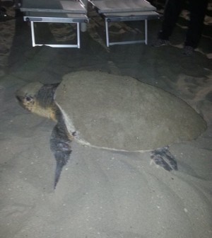 BATTIPAGLIA. Una tartaruga caretta caretta lunga un metro e larga 80 centimetri ha fatto tappa al lido Night and Day della litoranea di Battipaglia. L’animale è stato fotografato dai gestori del lido nella serata di lunedì. Sul posto è intervenuto il servizio veterinario di Capaccio e nella giornata di ieri i responsabili del centro per la salvaguardia delle tartarughe marine di Napoli. Si pensa che nei prossimi giorni la tartaruga possa ritornare sulla spiaggia per deporre le uova.